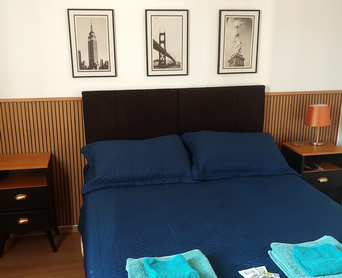 Este estúdio foi projetado para oferecer uma experiência única, unindo conforto, estilo e praticidade. A decoração moderna e cuidadosamente planejada cria um ambiente aconchegante, ideal para relaxar ou trabalhar com tranquilidade. Cada detalhe foi pensado para proporcionar bem-estar, desde a iluminação aconchegante até os móveis funcionais e elegantes. Perfeito para quem busca um espaço exclusivo, cheio de charme e personalidade. Colchão americano Stearns and Fosters dos melhores hotéis de NY.