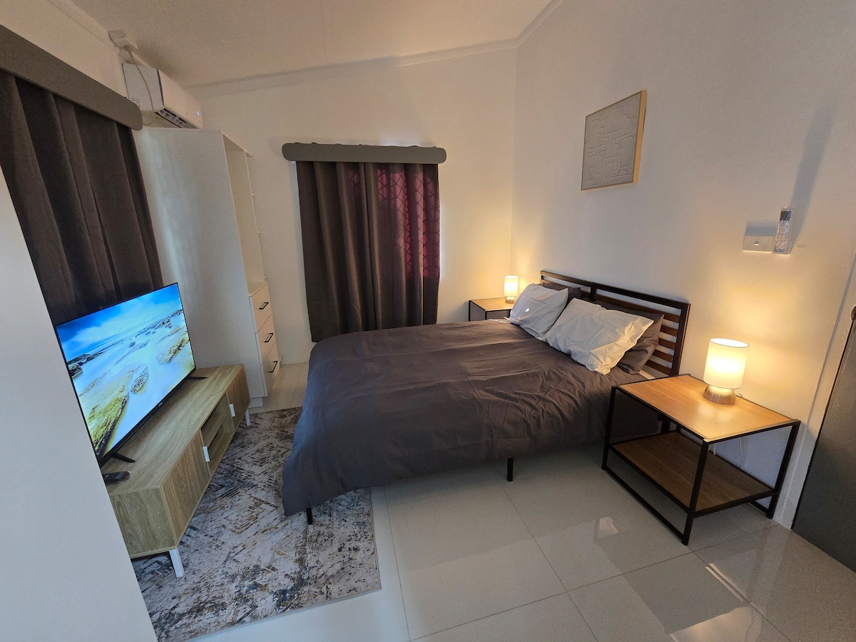 Studio apartment. 5 mins drive from Nadi Airport. Centrally located in Namaka, Nadi. Walking distance( 5 to 10 minutes) to supermarket, vegetable market, banks, doctor, post office, Coffee shops, bakery, Cinema, service station and anything which you may need. Room is fully furnished with a large bed, wardrobe, air condition/fan, table/chairs, fully equipped kitchen( all utensils), fridge, washing machine etc.. Pick up and drop off can be arranged.
