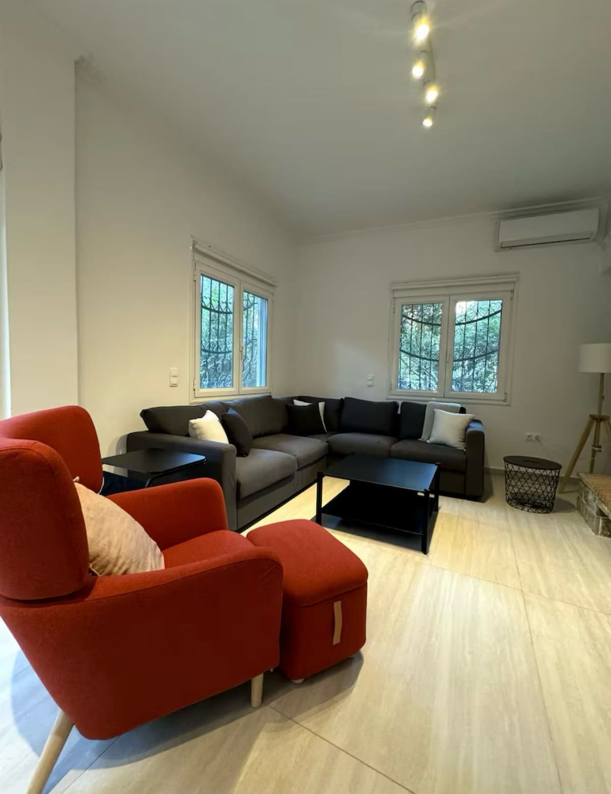 Comfortable, bright, extremely well located ground floor / semi basement 50m2 Studio, for 2 to 5 guests. In the best residential quiet area, free street parking. Walking distance from Glyfada center, public and pay beaches, grocery stores, bakery, children's playground. Near the tram line, the airport bus line and the bus to Athens city center via the Metro. Double bed in the main room of studio, single bed in bedroom, additional 2 kids/persons sleep on sofa bed. AC, Heating, free WIFI.
