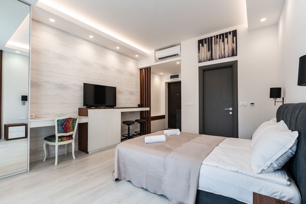 Near Kalemegdan Fortress looking at the Danube river is located our apartment built in 2022. It features king size bed, great HiFi audio quality, great video quality, excellent internet speed, free high-end espresso coffee and hotel like service for more than a week stays. Underground garage dedicated parking is available during the stay and included in the price.
