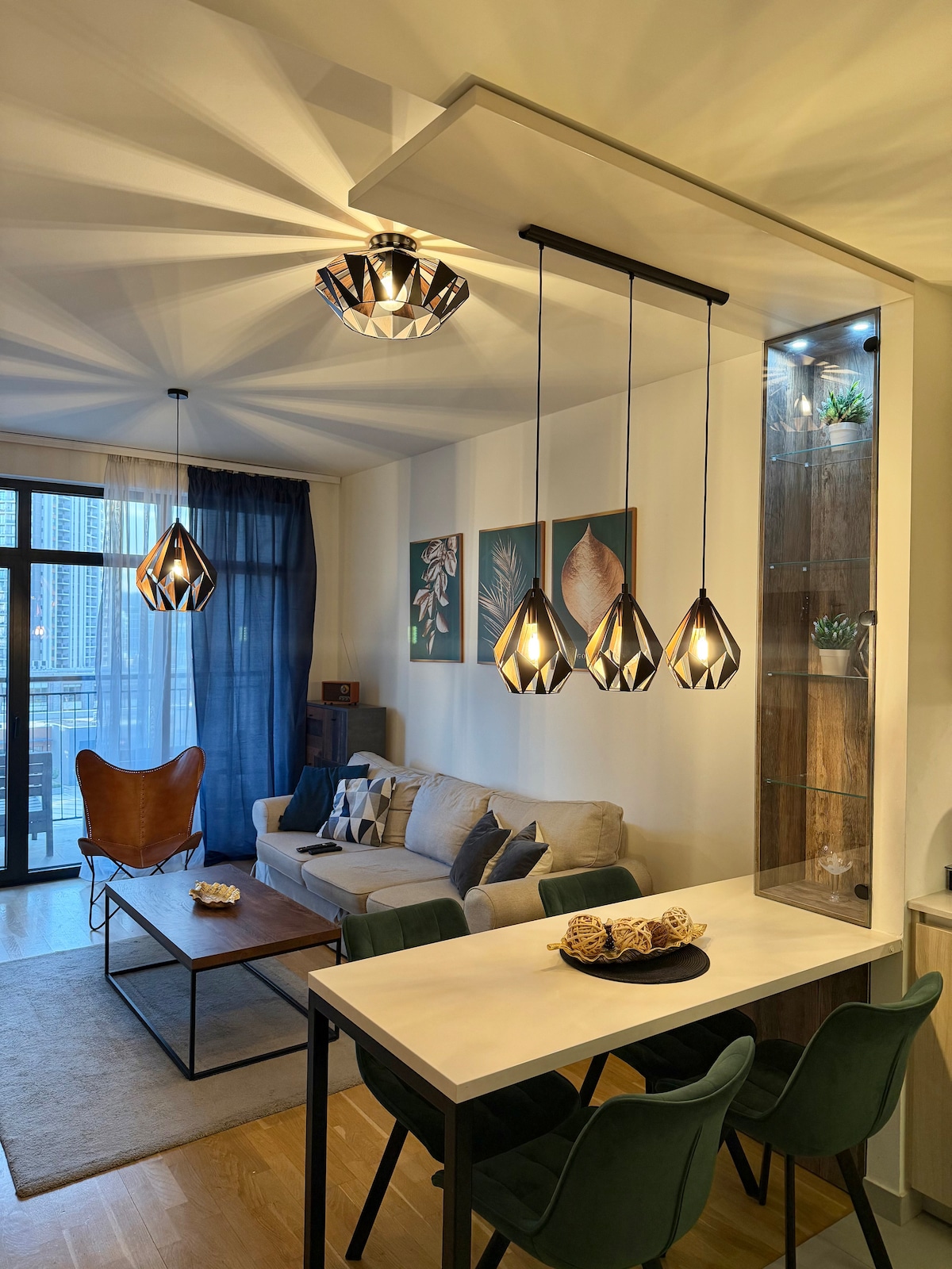 Enjoy Belgrade Waterfront at its best and experience a breathtaking view of the river from the spacious terrace of this thoughtfully designed apartment. Furnished with great attention to details, it offers you maximum comfort for up to 4 persons and a pleasant stay. Modern design, functionality and breathtaking river views are our hallmarks. Book your stay now for an inviting retreat that captures the essence of city life and the tranquility of the waterfront!