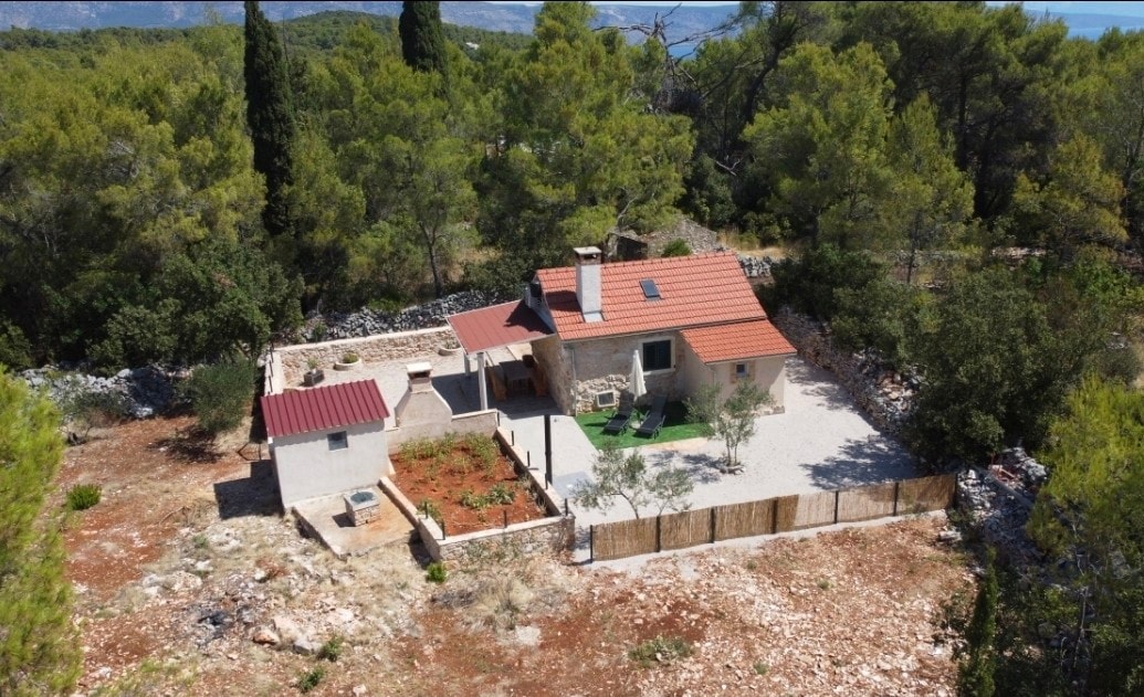 We are delighted to offer one of the most unique accommodations in Croatia, in the abandoned eco-ethno village of Humac. Villa dates back to 1880, and it was completely renovated in 2020. The estate consists of a traditional Mediterranean stone house of 160 m2 and a unique garden of 3000m2 fields of lavender and immortelle that provides complete privacy and peace. g This is a fully equipped 4 bedrooms and 5 bathrooms villa with a large terrace with hot tub and amazing sunset views