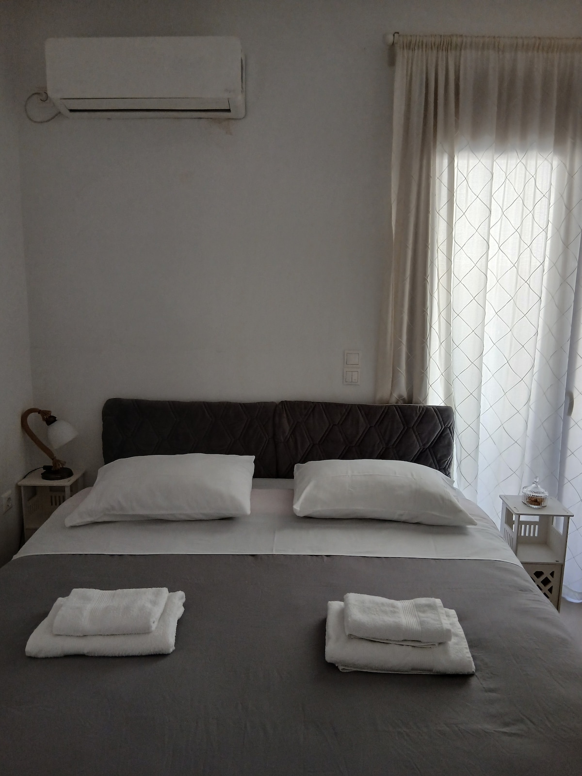 Κάντε ένα διάλειμμα και χαλαρώστε σε αυτόν τον γαλήνιο και ήρεμο χώρο. Νεόδμητο 1ου όροφου διπλοκατοικίας , μεγάλο μπαλκόνι και θέα. Διαθέτει υπέρδιπλο κρεββάτι που μπορεί να χωριστεί σε δύο μονά, εαν το επιθυμούν οι επισκέπτες , air condicion ή Ενδοδαπέδια θέρμαση και τηλεόραση. Πλήρης κουζίνα , με όλο τον εξοπλισμό. Μπάνιο με ντουζιέρα. Ανσασέρ , πόρτες Ασφαλείας. Τα κλειδιά τα δίνω εγώ στους επισκέπτες . Ο φόρος διαν/σης 2 ευρώ δεν έχει περιληφθεί στην τιμή . Πληρώνεται σε εμένα.