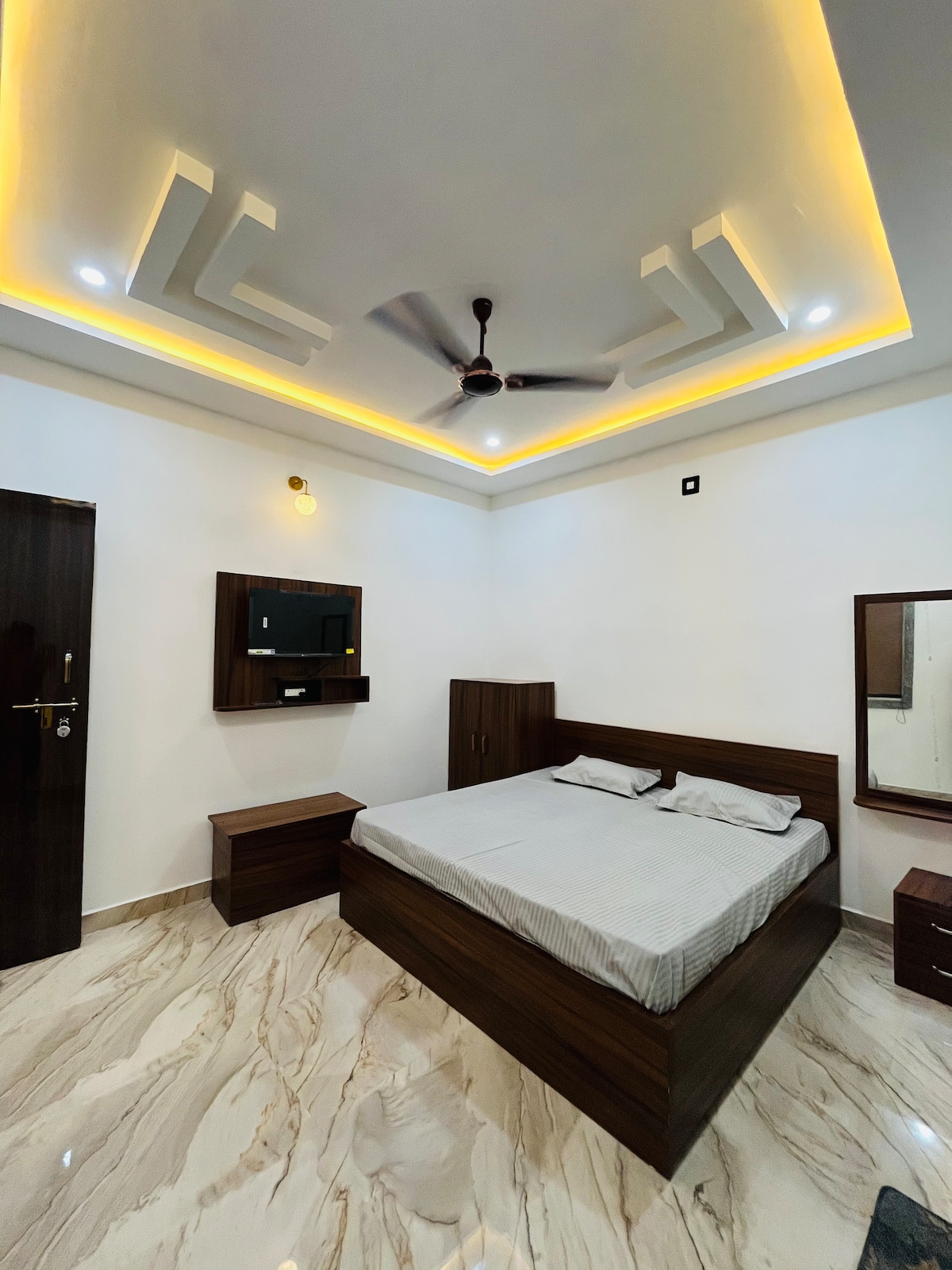 Listing description :- Welcome to your peaceful Vrindavan getaway 🌸 Our cozy 1BHK apartment offers the perfect blend of comfort, convenience, and safety—along with breathtaking Vrindavan views from your private balcony. Main Attractions Nearby: ✨ Prem Mandir – Just 5 minutes away ✨ ISKCON Temple – 5 to 7 minutes away ✨ Bankey Bihari Ji Temple – Around 15 minutes away 🚖 Convenient e-rickshaw service is easily available right from the society for a smooth travel experience.