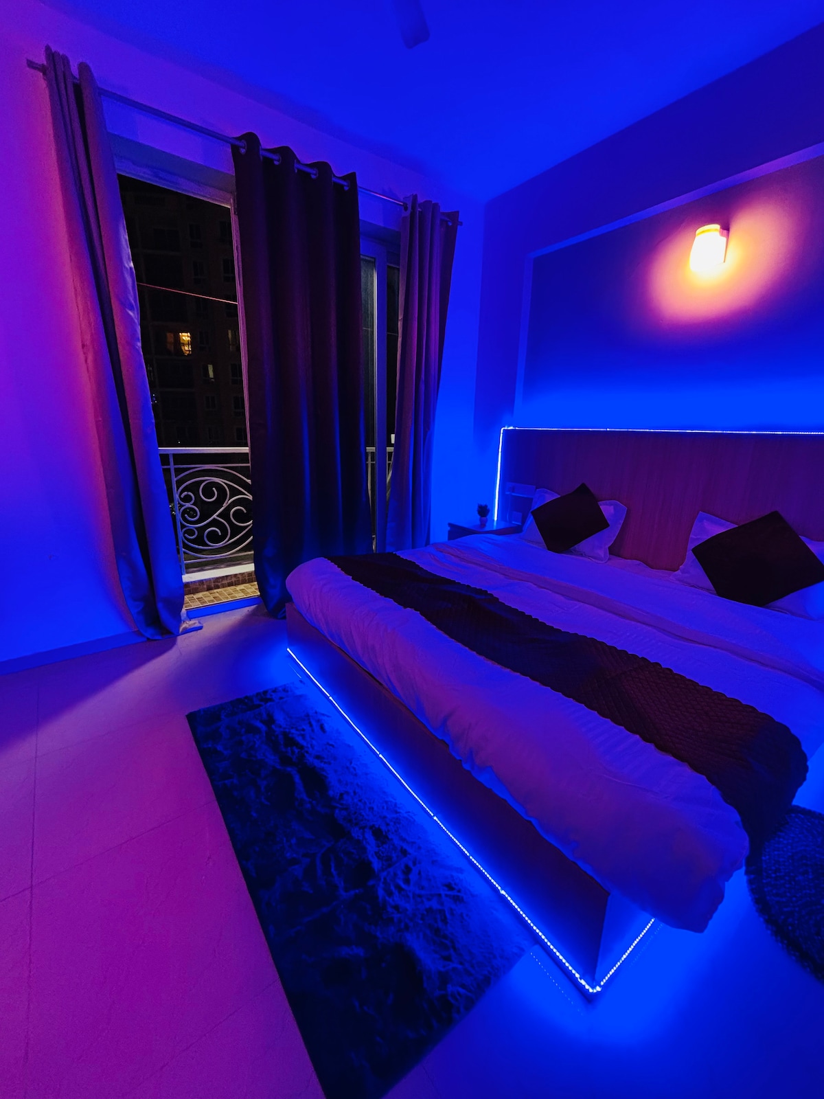 3 Kms (10min) from Prem Mandir 3.5 Kms (12min) from ISKON 4 Kms (15min) from BankeBihari. Experience Urban Luxury in Vrindavan! > This stylish retreat on 15th-floor boasts great aesthetics, sparkling clean corners, breathtaking skyline vistas with 24x7 lift, high speed internet & well stocked supplies! > Relax on two balconies, enjoy coffee in the cozy living area, or whip up a meal in the well-appointed kitchen. Retreat to the comfort of bedroom or take long showers - welcome home!