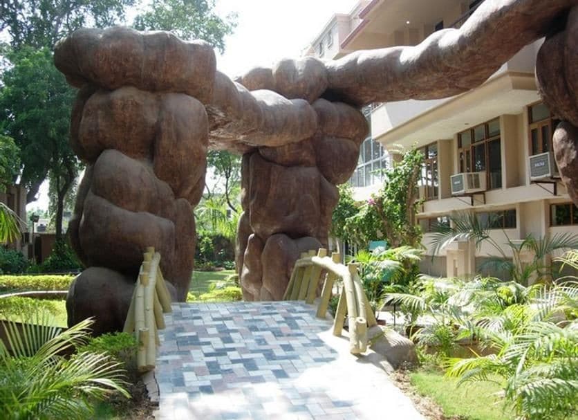 Bhakti Vanam带阳台的Vrindavan Dham景观