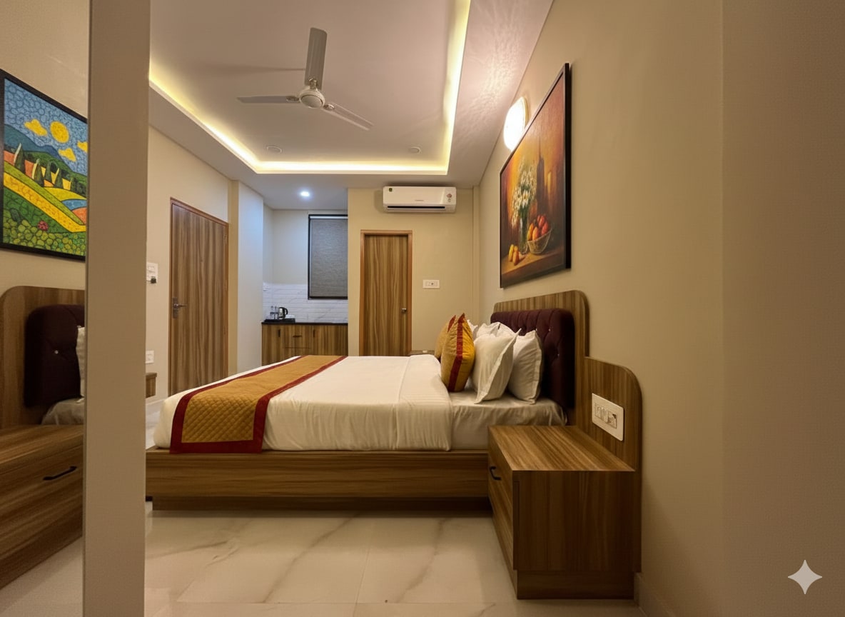 Stay in comfort with spacious rooms, premium amenities, and a calm, clean environment. Our friendly team ensures quick responses, smooth check-ins, and a welcoming experience. Ideal for families, solo travellers, and couples seeking value, convenience, and reliable hospitality. Your perfect blend of comfort, care, and convenience.