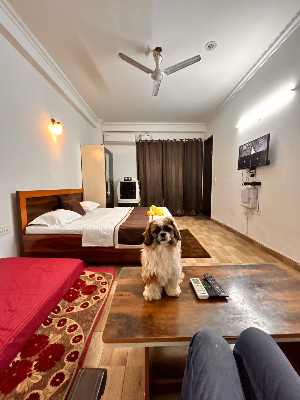 A newly built home in vrindavan and mathura. • Just 4 km from Shri Krishna Janmbhoomi • 10 min drive to prem mandir Vrindavan • 6 km from the grand Chaar Dham Temple, Vrindavan • 15 min to premanand maharaj(kelikunj ashram) Rooms are well-appointed room features a private attached washroom with Western-style toilet seats, shower gel and shampoo. rooms has Smart TV, tea kettle, and 8-inch Wakefit mattress for restful sleep. Relax in the cozy indoor seating area or step out into the small garden