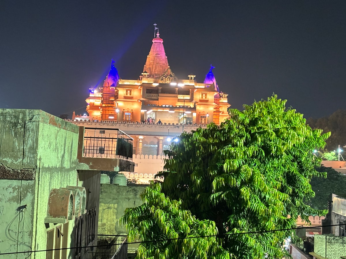 Experience the divine charm of Mathura at Divine Stay, a vintage-style private 2BHK homestay right in front of Lord Krishna’s Janmabhoomi Temple. Perfect for 2–6 guests. Features 2 bedrooms, a living room, kitchen, veranda, free WiFi, luxury toiletries, and a full set of towels, all within a peaceful, quiet environment. Just 3 km from Mathura Railway Station, with easy access to Vrindavan, Goverdhan, and Gokul via public transport or our taxi services, with English-speaking drivers available.
