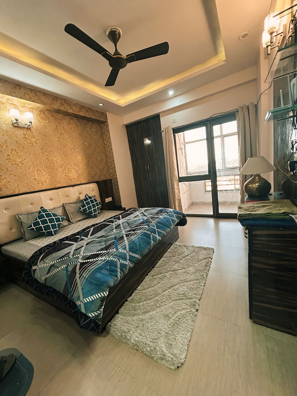 Relax with this peaceful place to stay. apartment is in a very quiet and central location. All important temple can be reached very quickly and easily. Prem Mandir – 2 km ISKCON Temple – 2.5 km Banke Bihari Temple – 5 km The apartment is located in the residential gated community Near Prem Mandir. [ Lotus Garden Homes society ] Each cosy bedroom is fully furnished with a queen bed and all natural fibre linen. With plenty of natural light during the day,