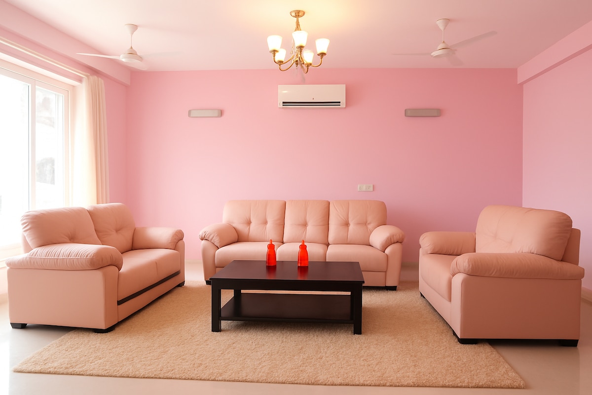 Welcome to Vrindavan Vista by Red Olive — a serene 2.5BHK apartment in the heart of Vrindavan, perfectly designed for those seeking comfort, devotion, and peace. Located just 2 km from the sacred Prem Mandir, this elegant home offers a tranquil retreat within one of the city’s most vibrant and spiritual neighborhoods. Set in a prestigious gated society, the apartment features fully air-conditioned bedrooms, a cozy living room, and all the modern amenities you need for a relaxed stay.