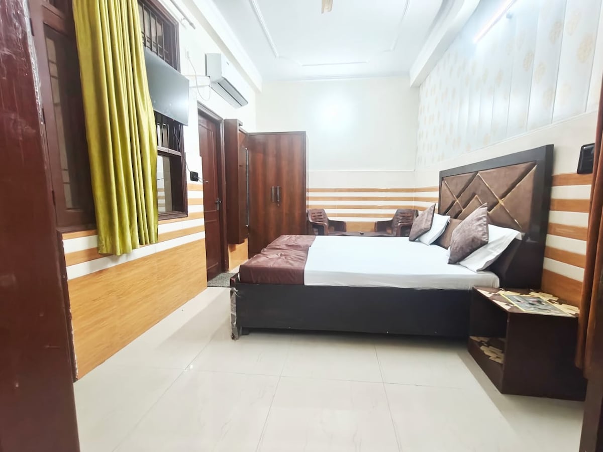 Stay at Bhakti Vanam, just 1.5 kms from the sacred Prem Mandir in Vrindavan. Enjoy a spacious studio with air conditioning, high-speed Wi-Fi, a private entrance, and a cozy balcony. Perfect for two guests, with an extra bed available if needed. Convenient to temples and public transport, and scooty rentals can be arranged. Full access to a well-equipped kitchen and clean washroom. Ideal for families or solo travelers seeking comfort and peace in a spiritual place.