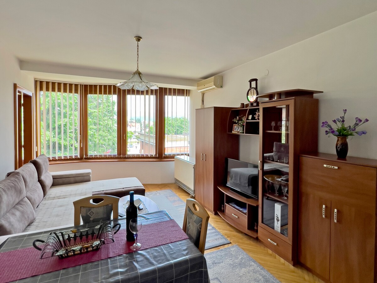 Ideal accommodation in peaceful neighbourhood near the center of the Vrnjacka Spa. Everything you need is located just a few minutes away. The apartment consists of separate bedroom with queen bed, living room with large sofa, LED TV and AC, kitchen with dishes, stove and fridge , bathroom equipped with shower with massage and FM radio function, large sunny terrace, free parking spot and free WiFi. The total area of the apartment is 40m2 and it's located on the first floor of the building.