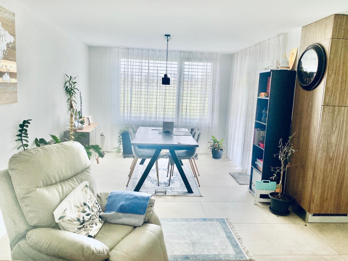 Our completely refurbished apartment is located on one level in a country chalet with its own entrance, terrace and parking space. Beautiful walks await you in the surrounding area. Quiet, mountain views, 10 minutes from Lake Geneva, 15 minutes from Montreux and 20 minutes from Lausanne. We look forward to welcoming you and helping you enjoy this beautiful location.