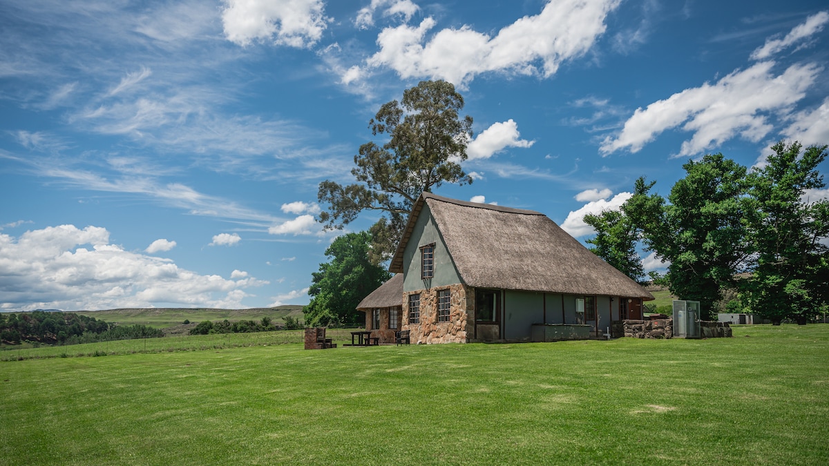 & Castle Cottage as it has a beautiful views of Bamboo Mountain and Garden Castle! It is a big family unit on a working farm 17 km outside of Underberg. Enjoy spectacular mountain views and keep warm in front of the cosy fire place in the lounge on a crisp winter night. Stoneyhall Farm is completely off grid and work on solar power backed by a generator.