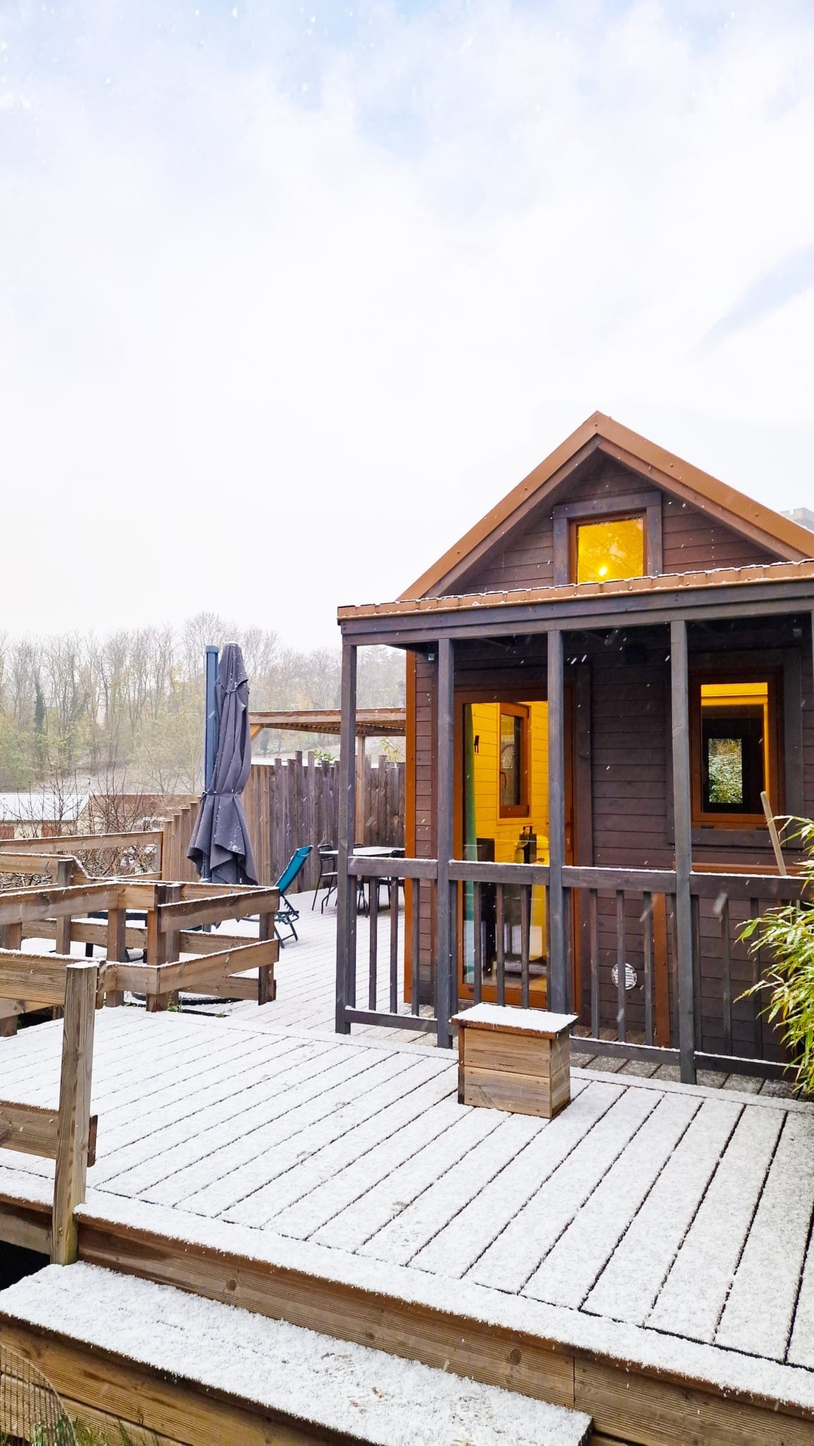 Une charmante tiny house de 19 m2 avec une terrasse privative de 40 m2 donnant vue sur le château de Châteaugay ainsi que sur la plaine de la Limagne. Trois poules seront vos voisines. L'accès à la mezzanine (chambre) se fait par une échelle. Vous serez à 15 min du centre ville de Clermont Ferrand et vous pourrez aussi visiter les alentours. Profitez de la nature et des nombreuses balades. Allez visiter différents lieux interessants (plateau de Gergovie, Puy-de-dôme par exemple)
