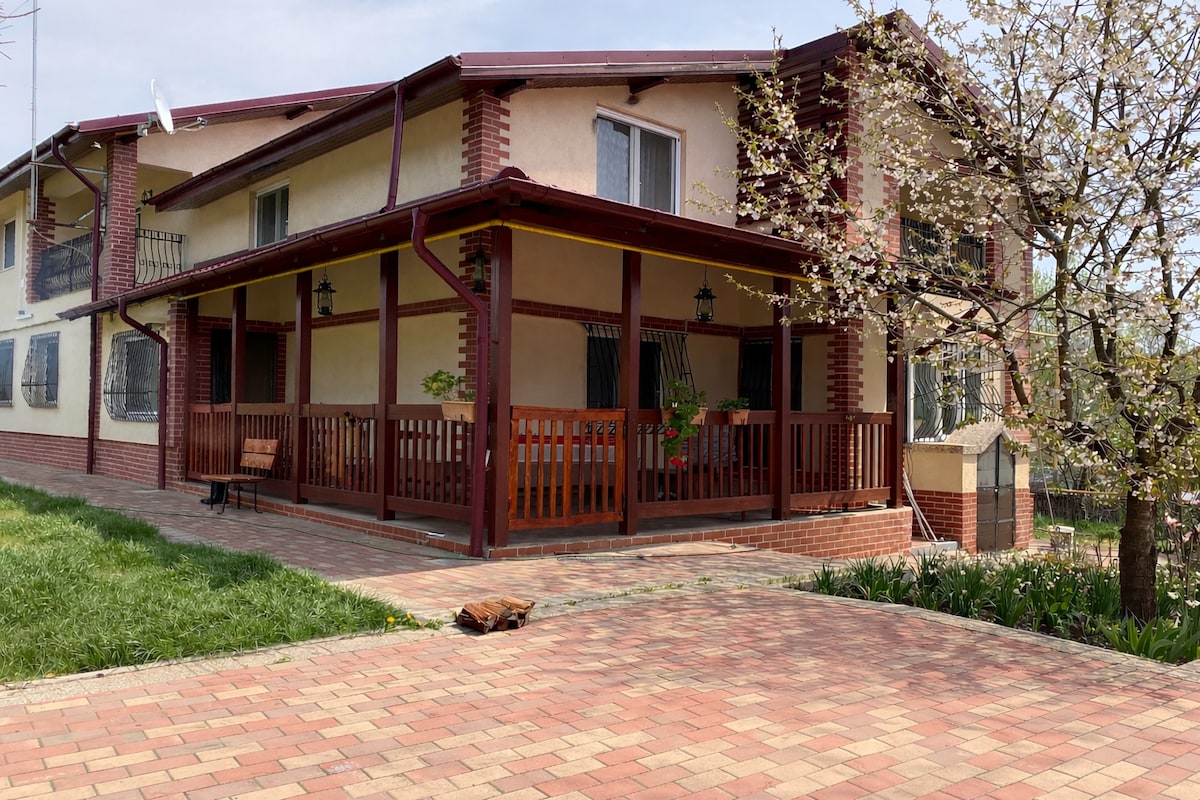 1h50 min driving from Bucharest (Otopeni) International Airport. Relax with the whole family at this peaceful place to stay. Or party with your group of friends ;) Enjoy hanging around naked in the entire garden - no neighbours to shy of ;) Eco built house - 100% made of wood.