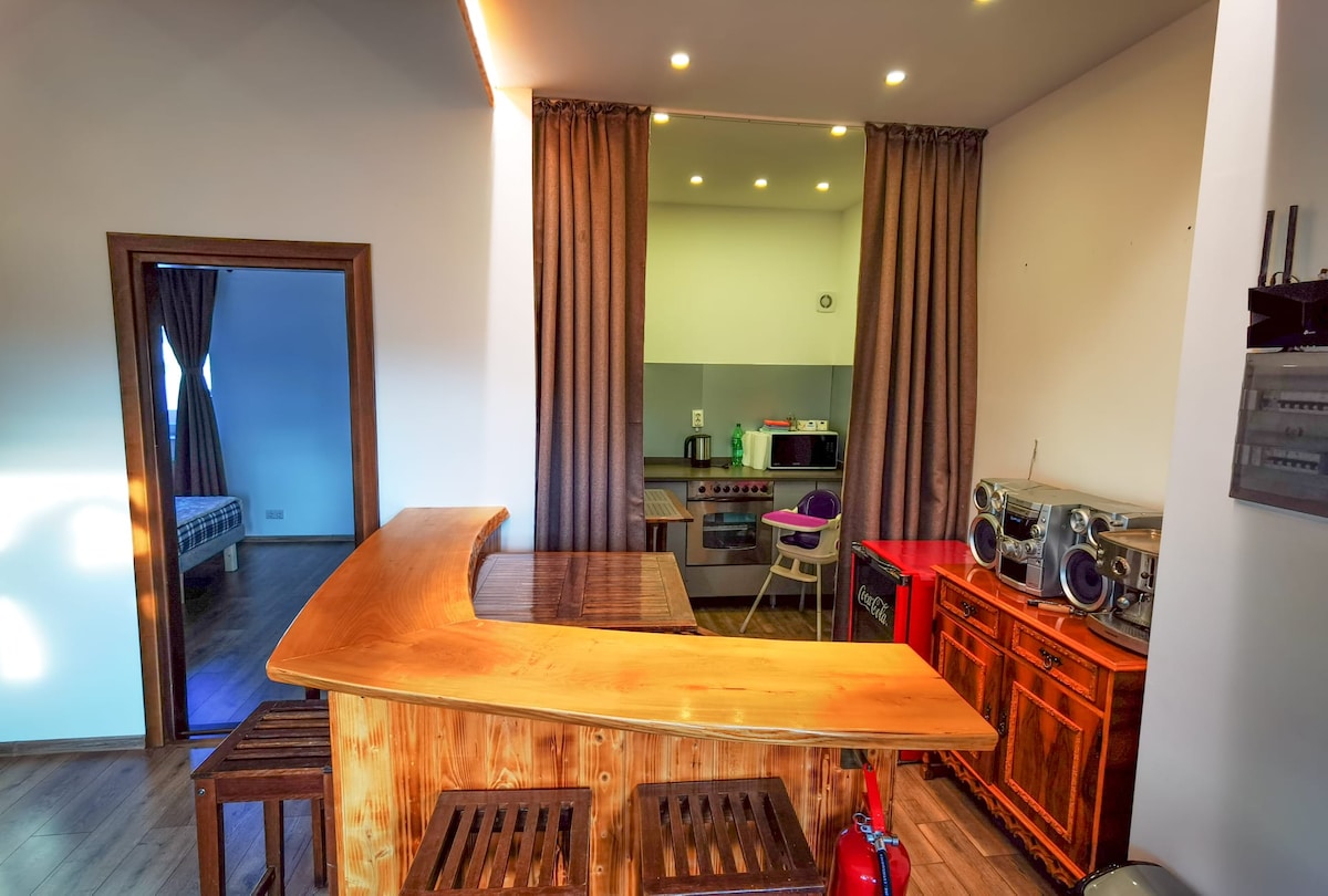 Beautifully refurbished and stylishly decorated 2 bedroom apartment, our property is situated in the heart of the town, offering a genuine and authentic experience of Nehoiu – a wonderful mountain town. You’ll be just a few steps away from local shops, restaurants, and cafés. There are plenty of remarkable places waiting to be explored, such as Lake Siriu (20 minutes drive), the Mud Volcanoes (1 hour drive), or the outstanding Orthodox monasteries (Ciolanu, Rătești, Cârnu – within 1 hour drive).