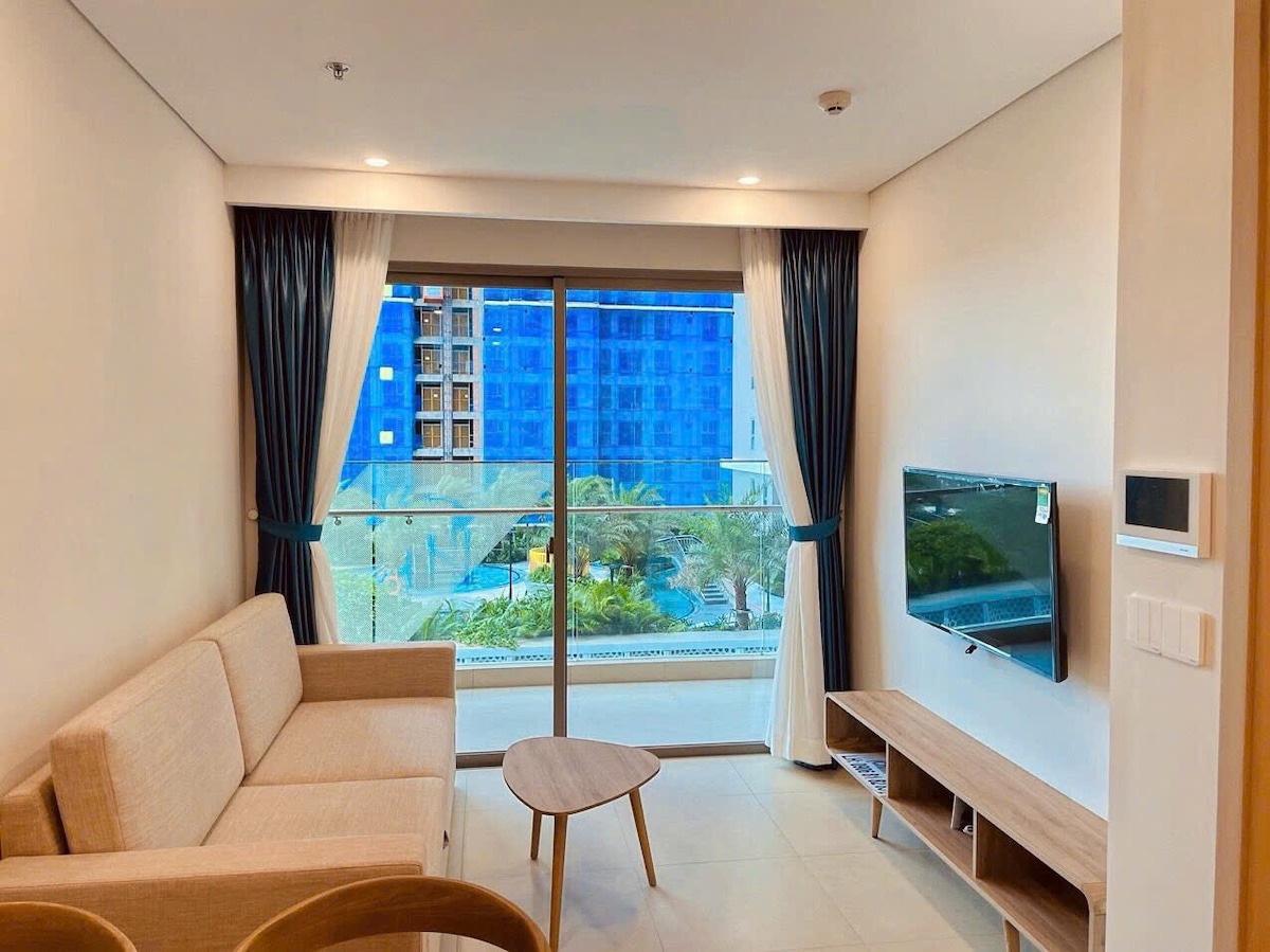 Vungtau Melody is the perfect choice for your stay, only 10 minutes walk from the sea. With an area of 83m2, ultra modern interior design will bring you the feeling of comfort that is extremely cozy. 🍀2 bedrooms with private toilet. 🍀1 spacious living room is where you can gather with relatives, friends. 🍀 All rooms are air-conditioned. Free Wifi. 🍀 View sea, lake, high floor 🍀 Full furniture: washing machine, refrigerator, ... Book to receive the package for the first week of opening.