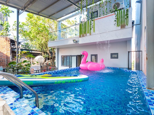 * Vị trí: Nằm ngay trung tâm thành phố biển Vũng Tàu, đi bộ 50 mét ra tới đường bờ biển bãi trước. Kế bên ga Cáp treo, gần các quán ăn Gành Hào, các quán cà phê view biển dọc đường Trần Phú. + Sức chứa: 15 - 30 khách. + Diện tích khuôn viên: 350m2. + Diện tích hồ bơi: 3mx7m. + Quy mô 9 phòng ngủ 11 giường 11WC. + Nội thất mới, hiện đại, có thang máy. + Nhà bếp trang bị đầy đủ đồ dùng nấu bếp. ** ĐẶC BIỆT có sân thượng lớn rộng rãi, thoáng mát đáp ứng nhu cầu tổ chức tiệc BBQ ngắm view biển.