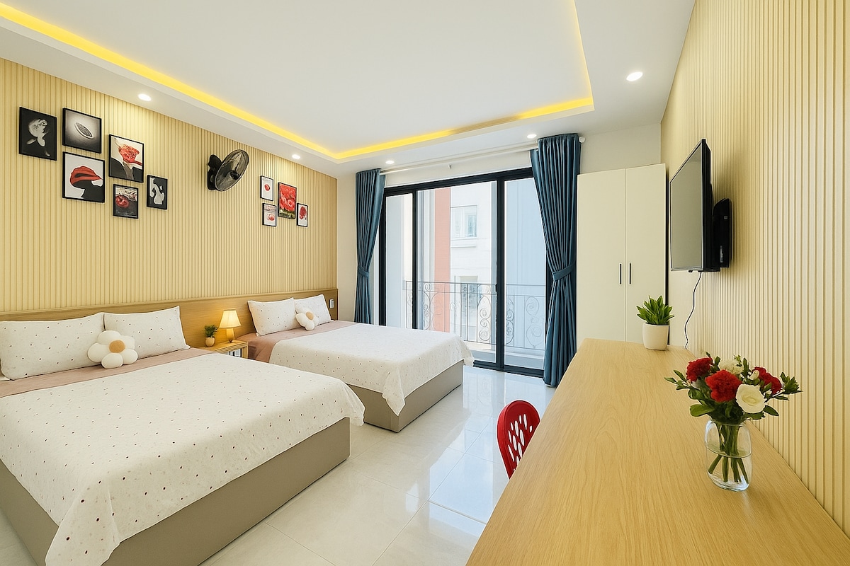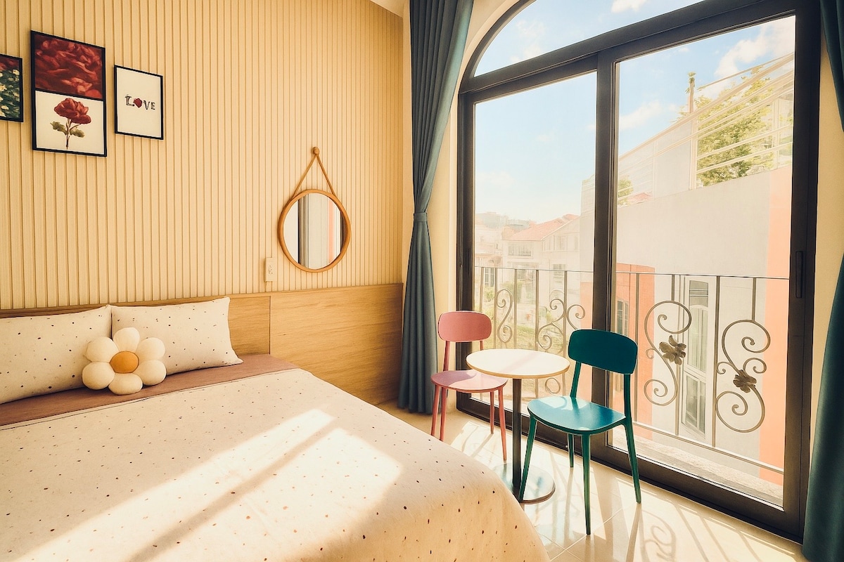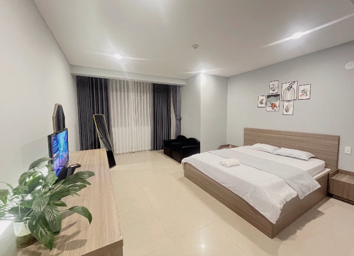 MINIMALIST STUDIO with huge windows and natural light. Enjoy a quiet and comfortable stay ideal for couples/solo travelers. PRIME LOCATION: Only a 5-minute walk to Back Beach (Bãi Sau). Easy access to seafood restaurants, local food, and main attractions (Jesus Statue, Lighthouse). Includes Queen Bed, A/C, TV, fridge, and private clean bathroom.