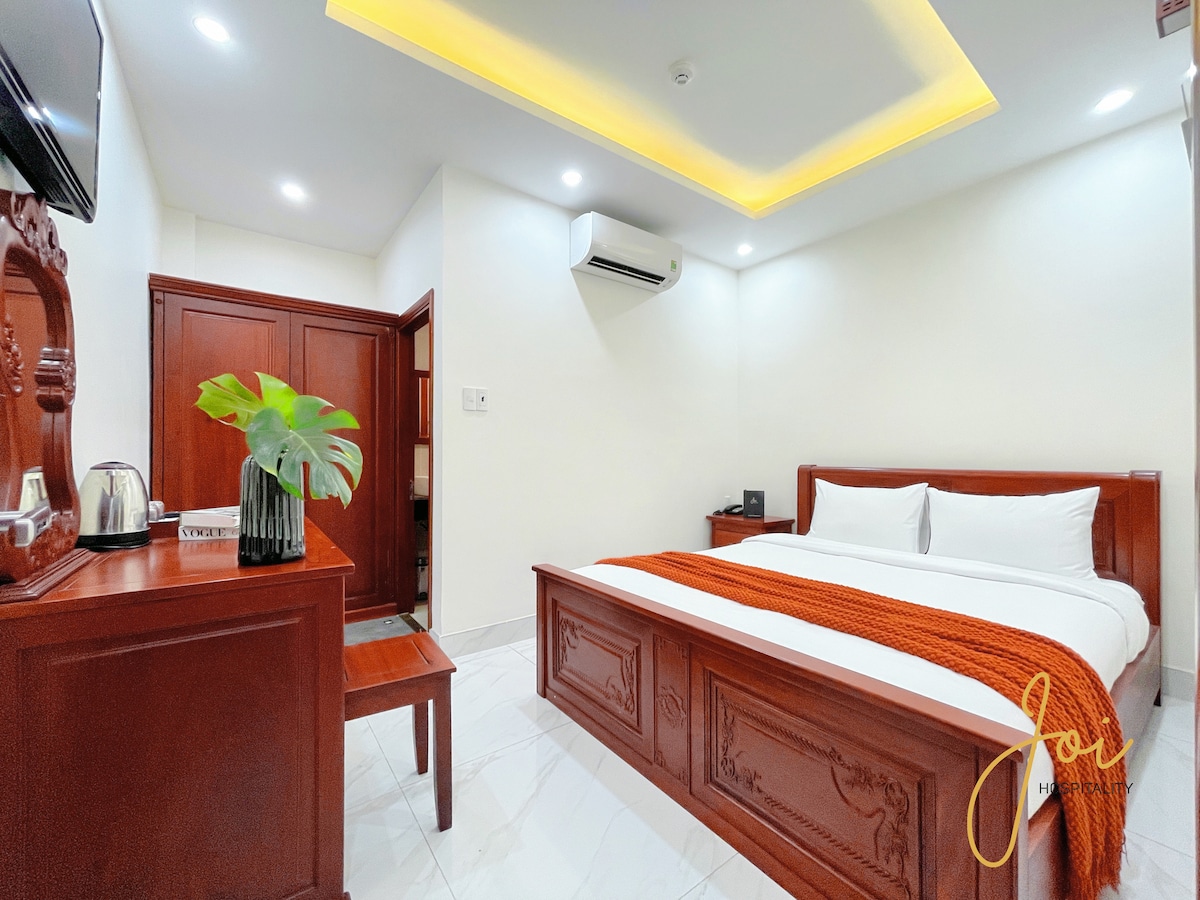 Located right at the busiest tourism center of Vung Tau, it just takes you a 3-minute stroll to reach Back Beach. Within 200-metre radius of the hotel area, there are a variety of restaurants, coffee shops, and convenience stores such as Circle-K on 24/7 service for your usage. Rooms are decorated with wooden furniture, shower, hairdryer, kettle, cable TV, noise-free air conditions and mini-fridge. Free air ticket and long distance bus booking assistance. Complimentary: drinking water.