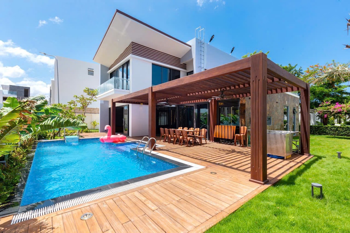 Villa Toạ Lạc Tại Thành Phố Vũng Tàu Xinh đẹp - Diện tích 1000m2, thiết kế phòng sang trọng và đồ nội thất cao cấp - Hồ kích thước đẹp và không gian vui chơi mát mẻ - Biệt thự thiết kế 5 phòng ngủ, mọi phòng ngủ đều đẹp và hiện đại, đầy đủ các tiện ích - 6 Phòng tắm đầy đủ và đồ dùng cá nhân, - Phòng bếp cung cấp đầy đủ đồ dùng nấu bếp: lò vi sóng, lò nướng, nồi cơm điện, bình siêu tốc, tủ lạnh, chén bát đĩa - Sân rộng, thoáng mát, có thể tổ chức tiệc tùng thoải mái