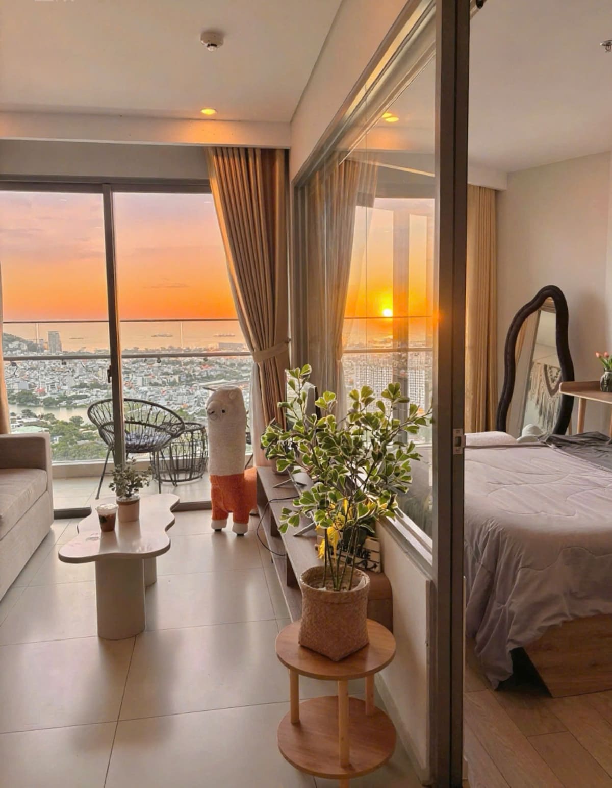 Enjoy breathtaking panoramic city views from this stylish 1BR condotel in the heart of Vung Tau. Perfect for couples or friends, the apartment features a cozy bedroom, modern design, and a private balcony to chill and watch the sunset glow over the city. Fully furnished with a comfy bed, smart TV, and kitchen essentials — just a few minutes from the beach, cafes, and night markets. A perfect spot to relax, unwind, and feel the vibe of Vung Tau.