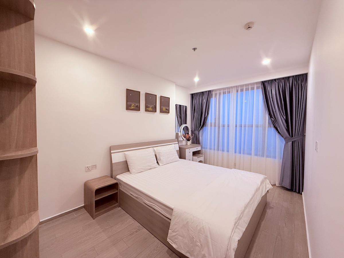 Căn hộ được Phượng trang bị đầy đủ trang thiết bị, với một chiếc giường êm ái. Tivi có chương trình NetFix, tủ lạnh máy giặt đầy đủ Không gian thoáng đãng, lãng mạng vào buổi tối giúp bạn thoải mái tận hưởng không khí trong lành sau những ngày làm việc mệt mỏi. Dưới chân toà nhà là siêu thị tiện lợi GS25 , cửa hàng coffe, cửa hàng ăn uống xung quanh. Chung cư cách biển chỉ 500m, ngay trung tâm VT Tiện ích bạn được dùng miễn phí như Hồ bơi tầng 36, xông hơi, Gym. Lịch bảo trì hồ bơi mỗi thứ 3