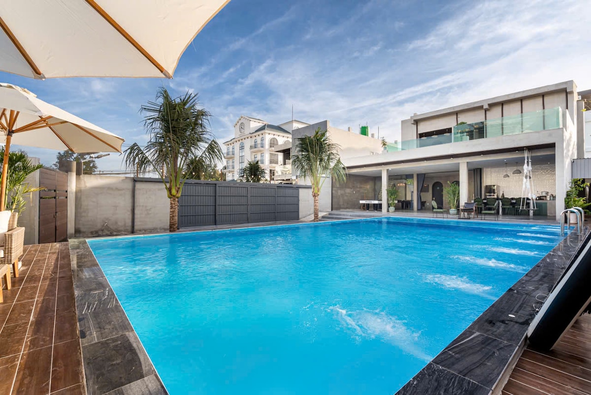 Villa Tọa Lạc Tại Trung Tâm Thành Phố Vũng Tàu Xinh Đẹp -Diện tích 1000m2, thiết kế các phòng sang trọng và đồ nội thất cao cấp - Hồ kích thước đẹp và không gian vui chơi mát mẻ - Biệt thự thiết kế 5 phòng ngủ, mọi phòng ngủ đều đẹp và hiện đại, đầy đủ các tiện ích - 6 Phòng tắm đầy đủ và đồ dùng cá nhân, - Phòng bếp cung cấp đầy đủ đồ dùng nấu bếp: lò vi sóng, lò nướng, nồi cơm điện, bình siêu tốc, tủ lạnh, chén bát đĩa - Sân rộng, thoáng mát, có thể tổ chức tiệc tùng thoải mái