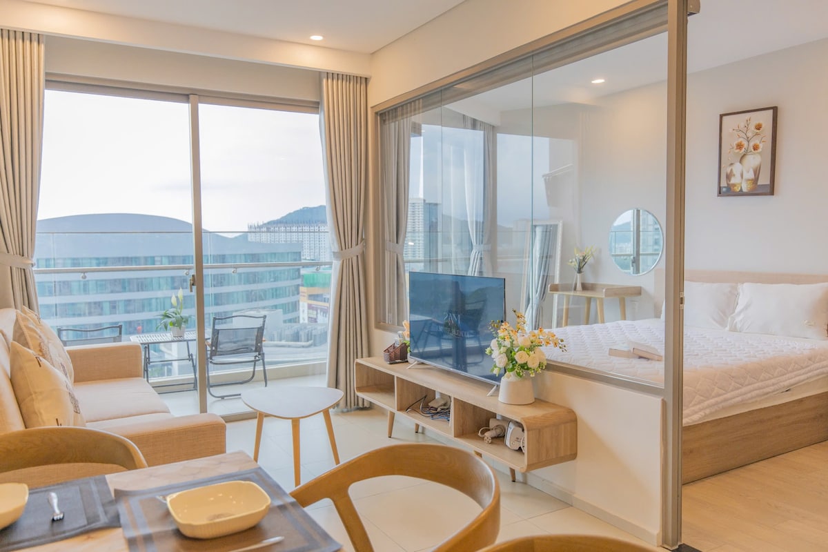 Mia Home is located on the 35th floor of The Song Building- 1 floor to the rooftop pool. The apartment is designed in vintage, romantic and cozy style, best suitable for couples or group of friends who love romantic vibe but still want some modern convenience. Free amenities you can enjoy during your stay: - Infinity Rooftop Pool (Close on Monday) - Sauna & Gym - Water park- children pool (Close on Thursday) - 5 minutes to the beach and 5 minutes to the nearest super market
