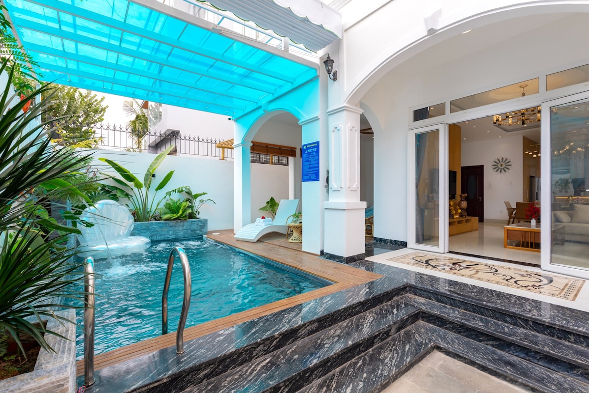 Villa Toạ Lạc Tại Thành Phố Vũng Tàu Xinh đẹp - Diện tích 1000m2, thiết kế phòng sang trọng và đồ nội thất cao cấp - Hồ kích thước đẹp và không gian vui chơi mát mẻ - Biệt thự thiết kế 5 phòng ngủ, mọi phòng ngủ đều đẹp và hiện đại, đầy đủ các tiện ích - 6 Phòng tắm đầy đủ và đồ dùng cá nhân, - Phòng bếp cung cấp đầy đủ đồ dùng nấu bếp: lò vi sóng, lò nướng, nồi cơm điện, bình siêu tốc, tủ lạnh, chén bát đĩa - Sân rộng, thoáng mát, có thể tổ chức tiệc tùng thoải mái