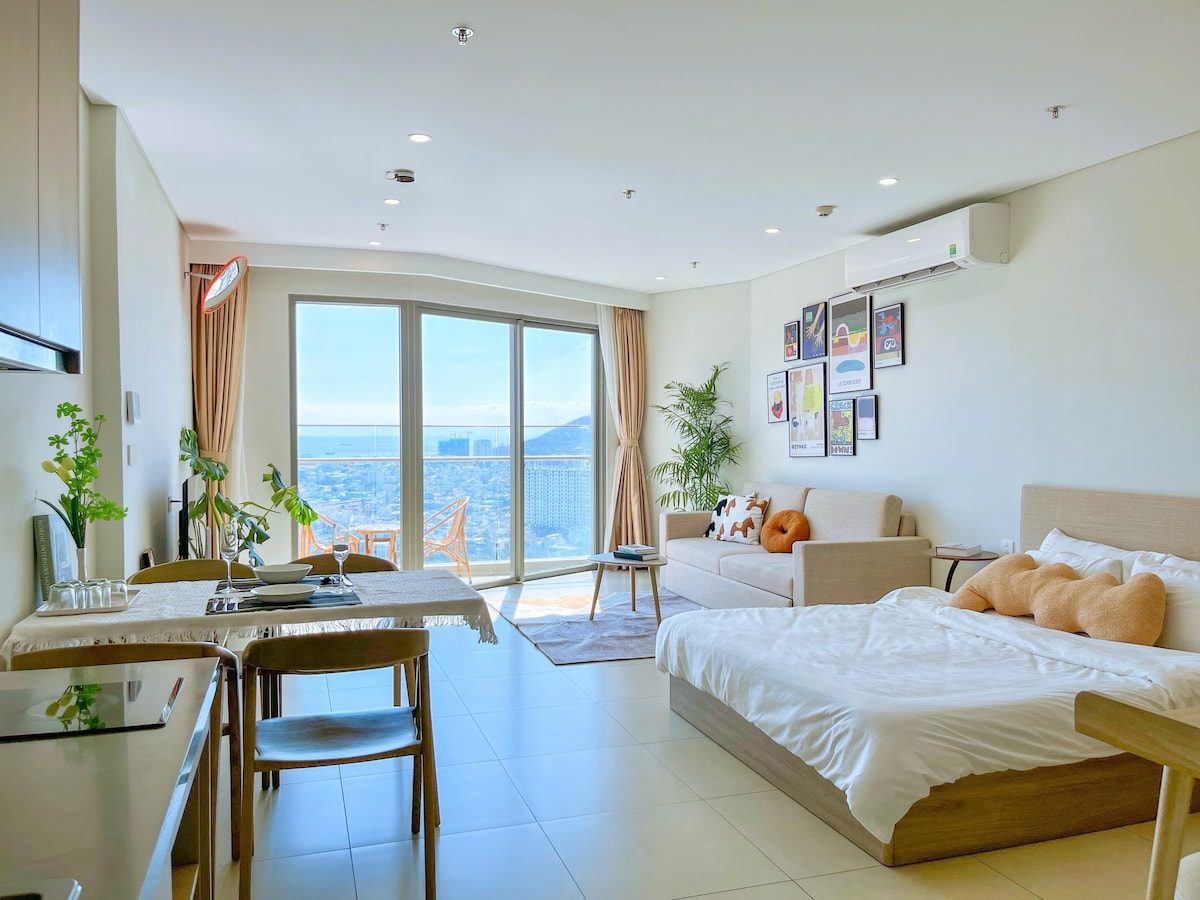 Mia Home is located on the 35th floor of The Song Building- 1 floor to the rooftop pool. The apartment is designed in vintage, romantic and cozy style, best suitable for couples or group of friends who love romantic vibe but still want some modern convenience. Free amenities you can enjoy during your stay: - Infinity Rooftop Pool (Close on Monday) - Sauna & Gym - Water park- children pool (Close on Thursday) - 5 minutes to the beach and 5 minutes to the nearest super market