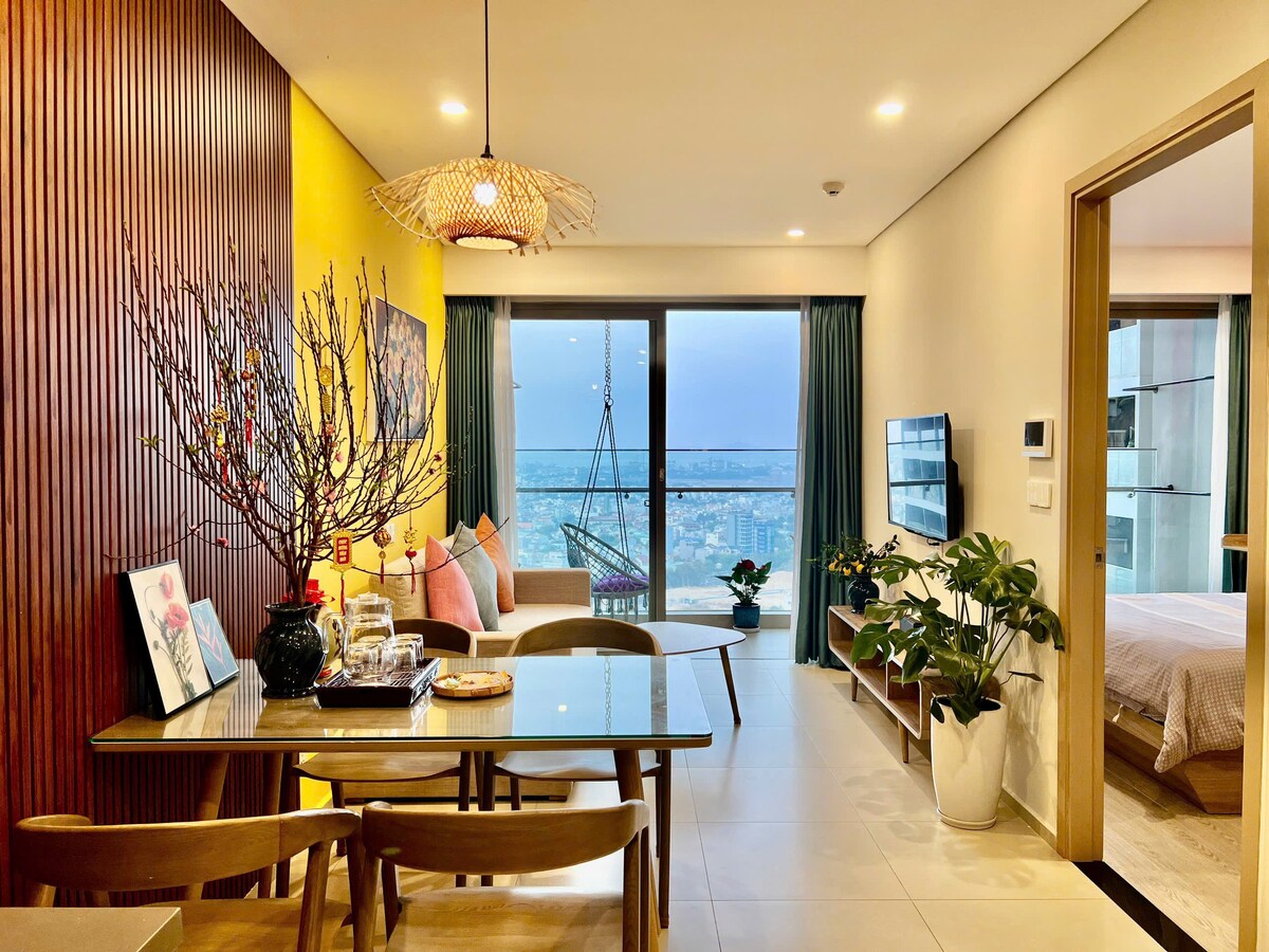 A modern, well-equipped studio apartment just minutes walking from Back Beach (Bai Sau). Walking distance to Lotte Mart, pharmacy, local market and convenience store. The Apartment is a perfect fit for a family of 4 with one bedroom with extra bed, kitchen, huge living room, comfortable shower, refrigerator, dinning table, working desk, closet and huge Wifi TV with Youtube.