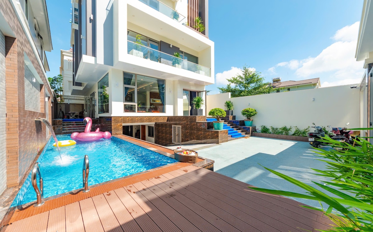 Jula’s Villa Bãi Sau - karaoke + bida Có 6 Phòng Ngủ tivi, 10 Giường, 6 WC cơ cấu phòng như sau : + 4 phòng 2 giường + 2 phòng 1 giường Diện tích sử dụng ( 500m2), 1 Trệt 2 Lầu Diện Tích Phòng Khách ( 50m2 ) Có Hồ Bơi ( 30m2 ) có thác nước Sức chứa : 16 người tiêu chuẩn ( tối đa 25 người ) Nhà Full Nội Thất , gia vị cơ bản, bàn ghế ngồi ngoài trời. Khu dân cư an ninh, thoáng mát Sân vườn rộng đậu 1chiếc ( oto ), thoải mái BBQ Cách biển tắm chỉ 300m