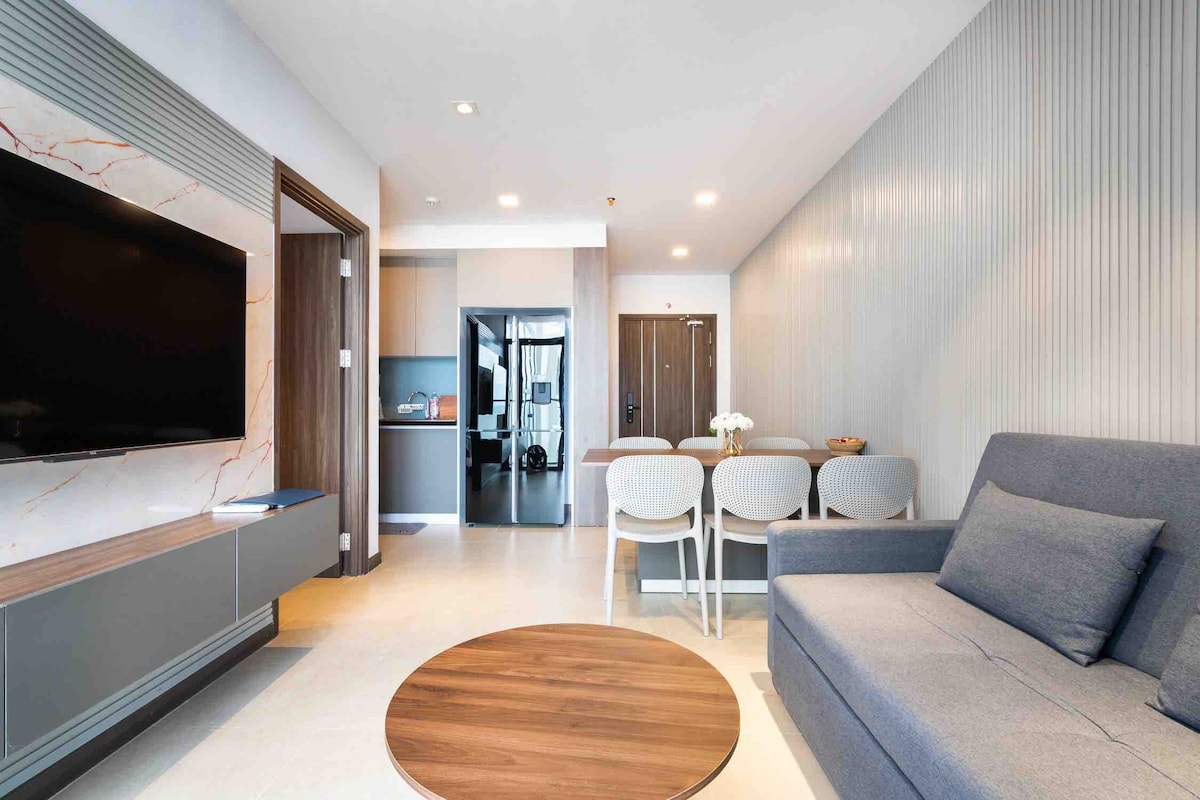 A modern, well-equipped studio apartment just minutes walking from Back Beach (Bai Sau). Walking distance to Lotte Mart, pharmacy, local market and convenience store. The Apartment is a perfect fit for a family of 4 with one bedroom with extra bed, kitchen, huge living room, comfortable shower, refrigerator, dinning table, working desk, closet and huge Wifi TV with Youtube.