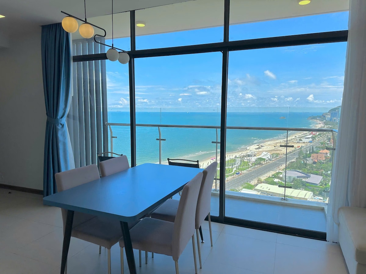 Căn hộ được Phượng trang bị đầy đủ trang thiết bị, với một chiếc giường êm ái. Tivi có chương trình NetFix, tủ lạnh máy giặt đầy đủ Không gian thoáng đãng, lãng mạng vào buổi tối giúp bạn thoải mái tận hưởng không khí trong lành sau những ngày làm việc mệt mỏi. Dưới chân toà nhà là siêu thị tiện lợi GS25 , cửa hàng coffe, cửa hàng ăn uống xung quanh. Chung cư cách biển chỉ 500m, ngay trung tâm VT Tiện ích bạn được dùng miễn phí như Hồ bơi tầng 36, xông hơi, Gym. Lịch bảo trì hồ bơi mỗi thứ 3