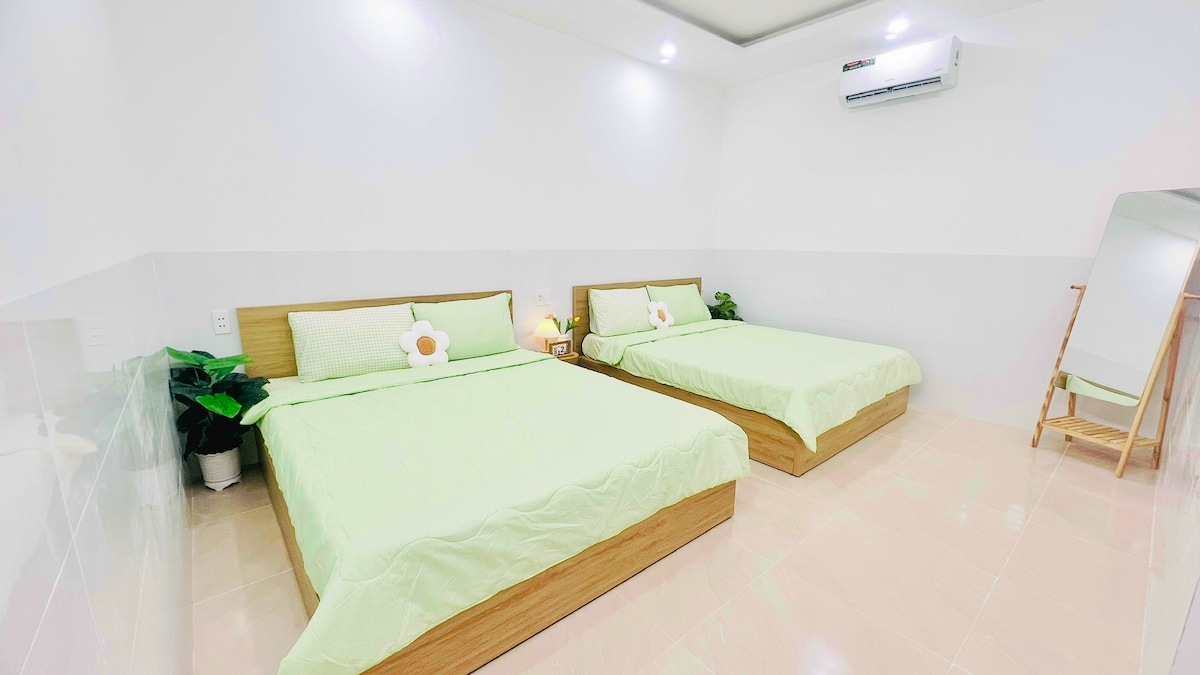 Nhà nguyên căn – Gần biển – Sân siêu rộng – Quẩy tẹt ga 3 phòng ngủ - 4 giường to - có nệm thêm, đủ chỗ cho nguyên hội bạn thân hoặc cả gia đình 3 nhà vệ sinh sạch bong, tha hồ dùng không phải xếp hàng Bếp xịn xò, nấu nướng vui phết – order đồ ăn về cũng có chỗ bày biện hoành tráng Sân rộng rãi, dựng bàn ăn, BBQ, hát hò, tổ chức mini party thoải mái Xe 4–7 chỗ chạy thẳng vào sân, xe 16 chỗ đậu trước nhà – không lo tìm chỗ gửi xe Gần biển Bãi Sau, Quảng trường Cột cờ, đi xe máy ra biển chỉ 3 phút