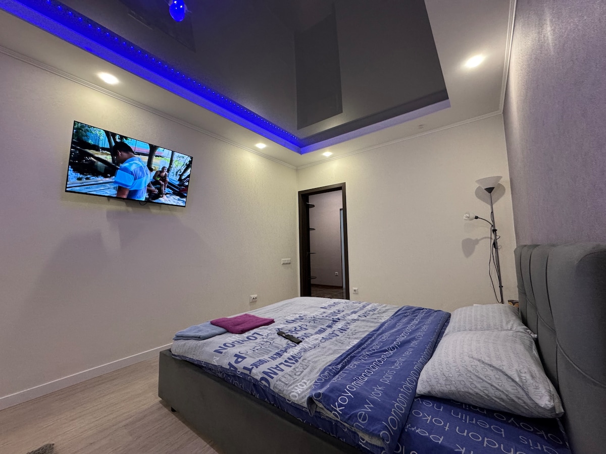 We will be very glad to see you at Velours Home! The apartment is located on Obolon, within walking distance from the metro station "Heroes of the Dnieper". Sleeping places: King Size mattress in the bedroom and a folding sofa in the living room, 4 people can comfortably accommodate. Fully equipped kitchen with stove and oven, dishwasher, microwave, electric kettle, geyser coffee maker, dishes, tea, coffee and water. Fresh linens and towels, disposable slippers, soap products are provided!