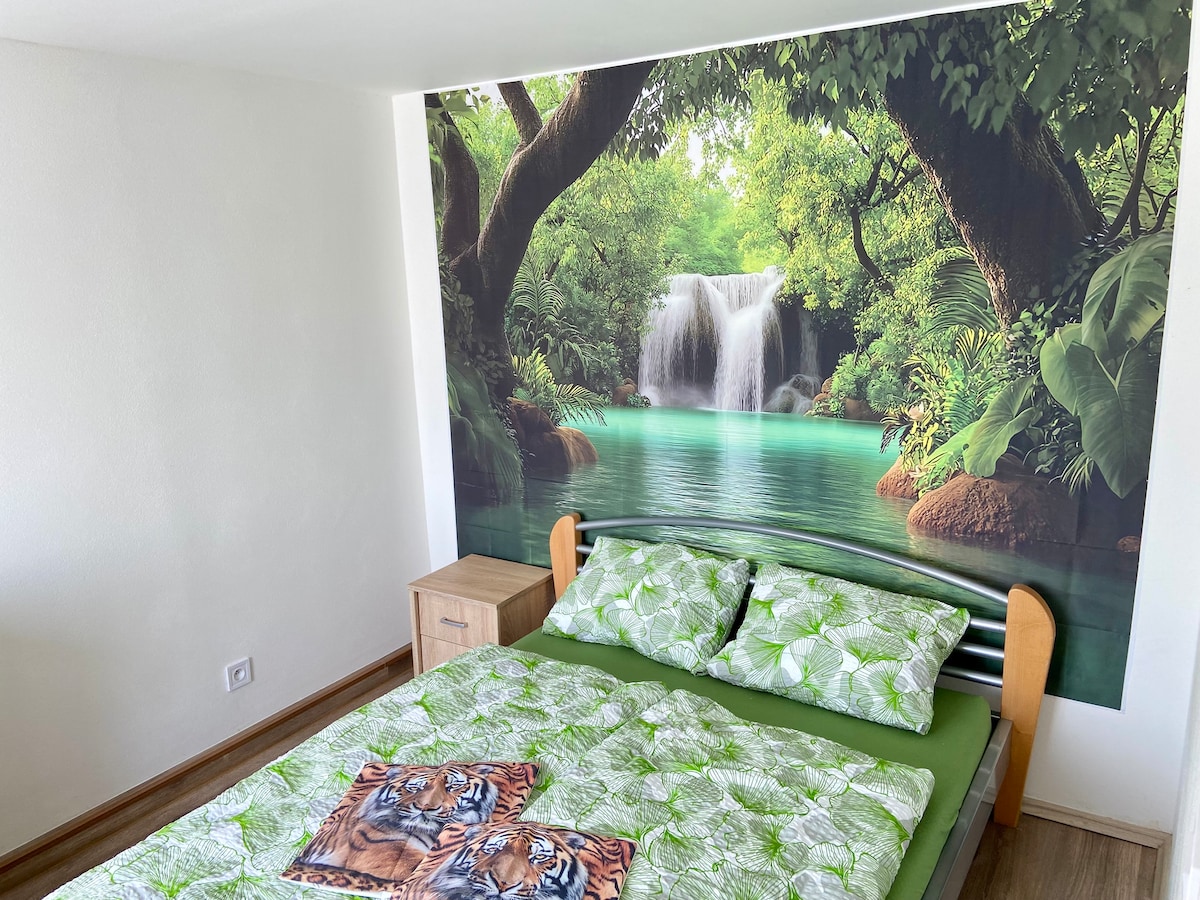 Byt v nově postaveném domě, s balkonem, s parkováním ve dvorním traktu. Vhodné pro návštěvníky sport. akcí Tenisového clubu, vzdáleného 10 min. pěší chůze. Vše nově zařízené: manželská postel, rozkl. pohovka, šatní skříň, komoda, jídelní stůl, rychlý internet, vybavená kuchyňská linka, lednice, vařič, varná konvice, mikrovlnka. Koupelna s vanou + pračkou. Okna situovaná do dvora. Pro děti jsou připraveny hračky i společenské hry.