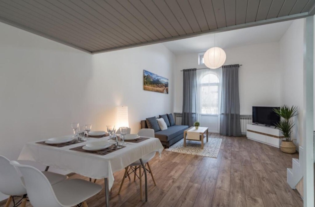 Luxusný 2 izbový apartmán o rozlohe 52 m2 sa nachádza priamo v srdci Vysokých Tatier v Dolnom Smokovci. Zo svojej veľkej loggie ponúka unikátne výľady priamo na Vysoké Tatry a jeho ideálna dispozícia využíva celodenný slnečný svit a večerný západ slnka. Jedinečnosť apartmánu dopĺňa skĺbenie moderných a pôvodných prvkov interéru, neobmedzené wifi, Netflix a možnosť ubytovať až 4 osoby.