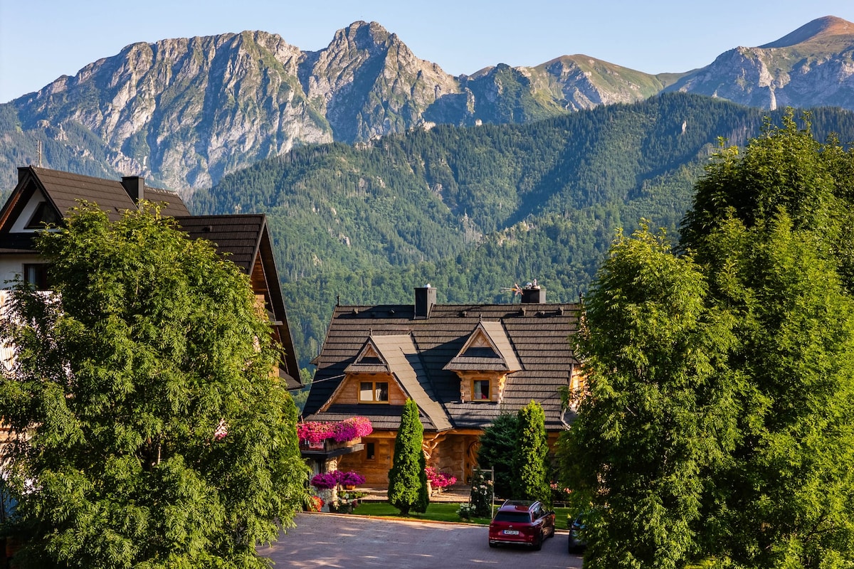 The luxurious wooden villa is nestled in nature, surrounded by the Tatry, Pieniny, and Gorce mountains. It boasts a beautifully landscaped 3,000m² garden with several terraces, all with views of the Pieniny and Tatry mountains. Our mission is to minimize the burden on the earth without sacrificing comfort. This luxury home is sustainably built and furnished. Cooking and baking are our passions, and we love sharing them with our guests, using local, regional products, of course. Pleasure by guide