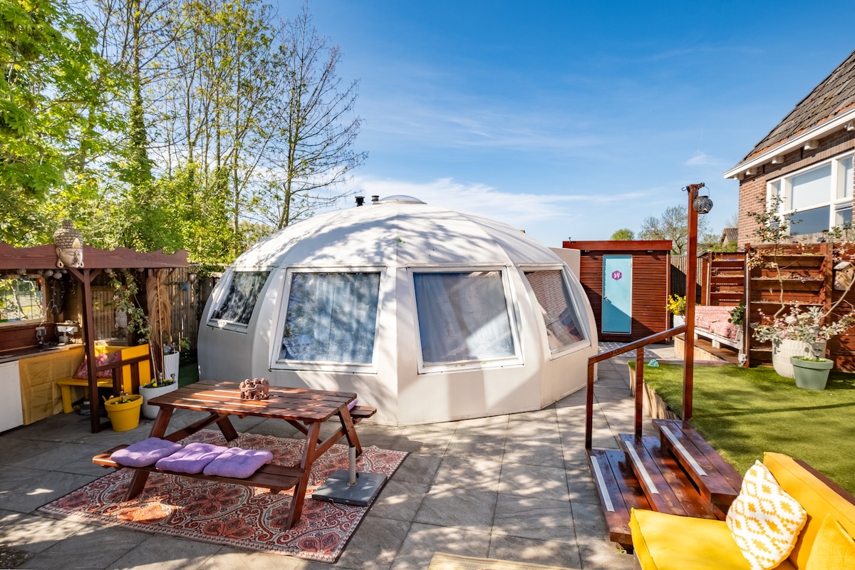 Have you always dreamed of sleeping in a (heated) IGLO? ❄️ This is your chance! The Wellness IGLO is located in the garden. Relax in the Finnish sauna, cool down in one of our cold plunge baths, or unwind in the heated color pool. The IGLO features a cozy seating area with fireplace, a mini-iglo with a double bed, a second bedroom with a double bed, the sauna, a kitchenette, and a bathroom with whirlpool, shower, and toilet. • Finnish Kota • Shower cabin • Outdoor kitchen with Green Egg BBQ