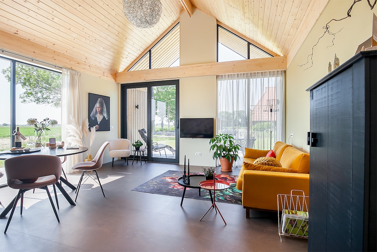 For those who enjoy being surrounded by nature, this peaceful chalet is the ideal place to relax. The chalet is very private and set in an orchard of just over a third of a hectare. (A pûnsmiet is an old Friesian word for a third of a hectare). It is a perfect place for those who want to indulge their creativity in writing or drawing. The beautiful views towards the dyke and into the orchard are unique in this Friesian landscape, where the sunsets are spectacular and ever changing.