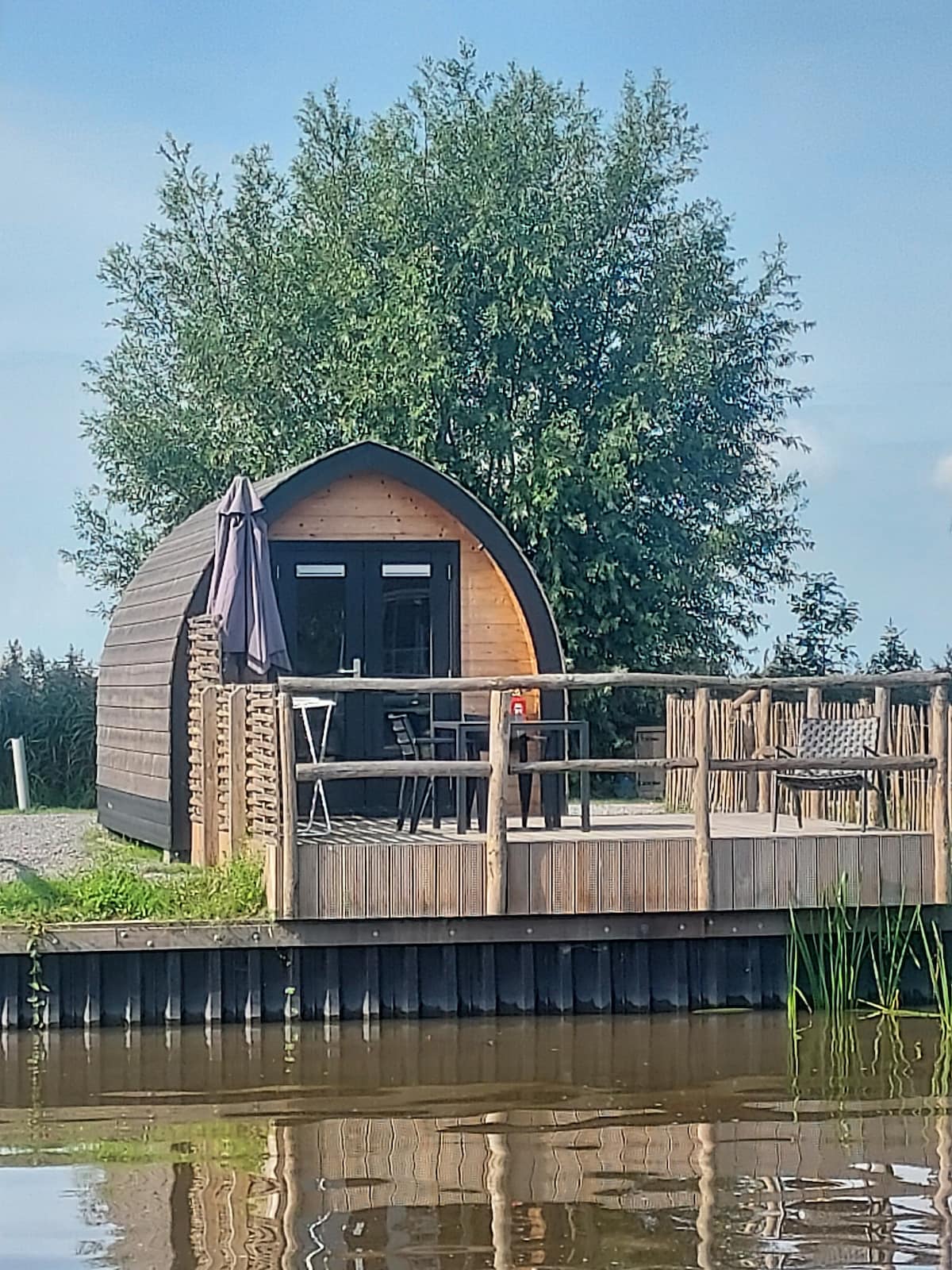 Heerlijk genieten aan het water. Het ruime terras bevindt zich direct aan de waterkant, waardoor de pod perfect is voor vissers of voor diegenen die simpelweg willen genieten van het rustgevende water. Of het nu zomer of winter is, deze volledig elektrische pod is goed geïsoleerd en voorzien van vloerverwarming, waardoor u het hele jaar door kunt genieten van de schoonheid van Friesland. Ontsnap aan de dagelijkse drukte en beleef een onvergetelijk verblijf in onze waterrijke pod.