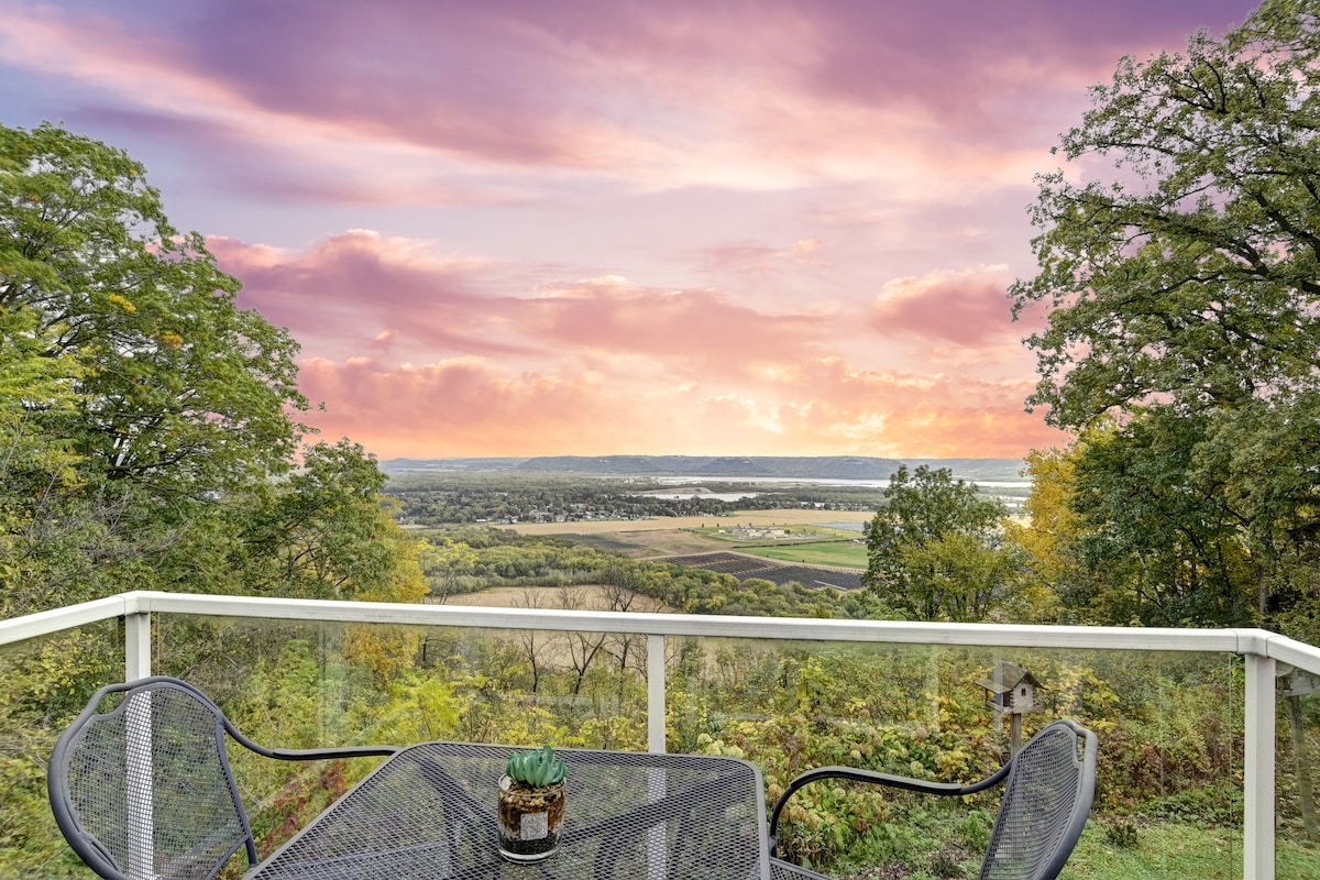 Hill Street House is the quintessential river-town residence, located within walking distance of Fountain City's quaint downtown, legendary pubs, and riverfront, but just far enough from the highway and trains to still get a good night's sleep. Perched snuggly on the bluffside overlooking the Mississippi River, you'll see an ever-changing panorama of river boats, barges, and birds in flight against a backdrop of Minnesota bluffs in the distance and a jumble of rooftops below.