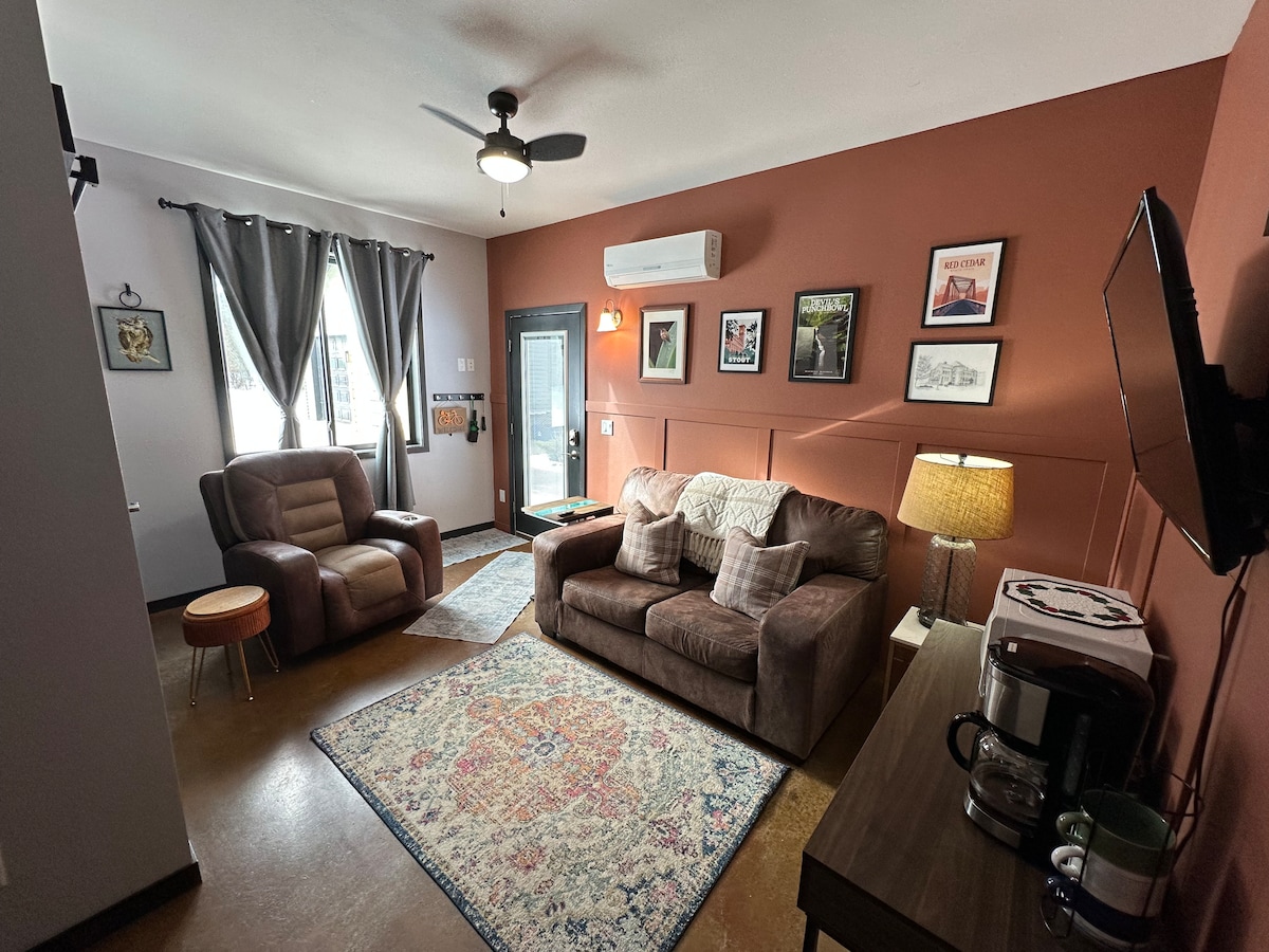 A cozy get-a-way in the heart of iconic Wabasha, Minnesota. What was once the candy shop, this cabin conversion boasts the best outdoor living space, a full kitchen + BBQ, a gas fireplace and is centrally located, just blocks from the Mississippi, National Eagle Center, Eagles Nest Coffee shop and so much more!! With a brand new Mint Tuft and Needle queen mattress you can bet on a comfortable night sleep!