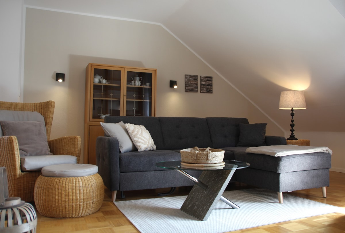 Kick back and relax in this calm, stylish space. There is a lot of room for up to 4 people, areas to relax, cook or work. Feel free to use the PlayStation or the electric sit/stand desk for home office activities. The loft is not far from Aschaffenburg, Frankfurt, Wertheim Village or Wuerzburg. All can be reached in max 50 minutes or less. Also, Spessart forest starts right behind the loft, a lot of walking and biking opportunities can be accessed from Waldaschaff and from the loft.