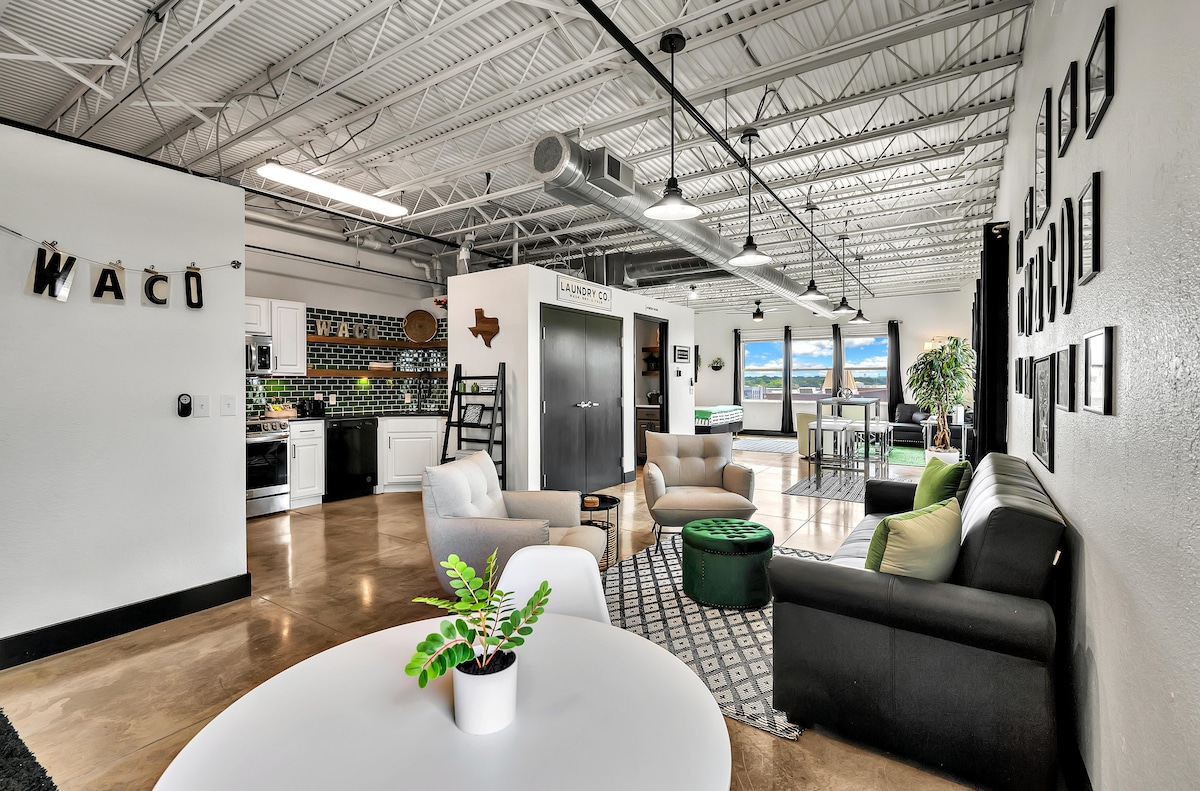 Step into the heart of Waco and elevate your stay at The Loft, a luxury urban retreat in the iconic Behrens Lofts. Situated just steps from the famous Magnolia Market, minutes from Baylor University, and a short drive to Waco Surf, this industrial-chic haven offers the perfect blend of comfort, style, and unbeatable location. Ideal for families, Baylor alumni, and groups of friends, The Loft is your ultimate gateway to everything Waco has to offer.