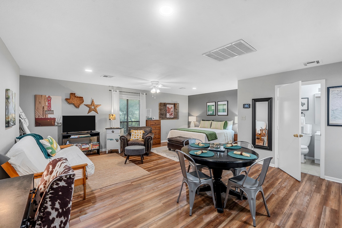 This charming studio guesthouse is centrally located, making it easy to explore all that Waco has to offer. Enjoy local shops, visit Magnolia, and watch the sunset over Lake Waco. Take a leisurely stroll in Cameron Park, explore the fantastic Cameron Park Zoo, or go kayaking on the Brazos River. Plus, we’re just a short distance from Baylor University! 4 minutes to Little Shop on Bosque 8 minutes to Magnolia Market at the Silos 6 minutes to Cameron Park & Zoo 11 minutes to Baylor Campus